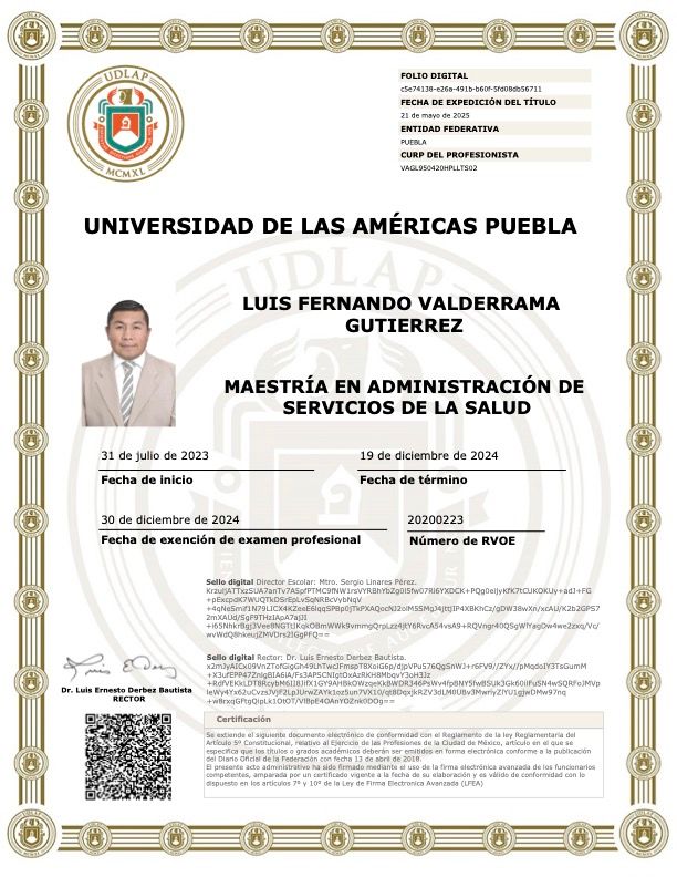 Universidad de las Américas Puebla en Maestría en Servicios de la Salud