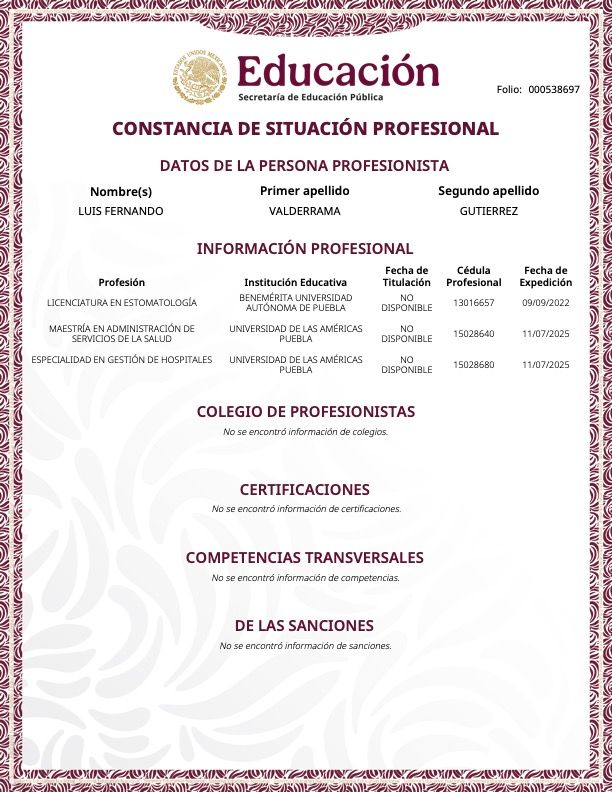 Benemérita Universidad Autónoma de Puebla, en la Licenciatura en Estomatología