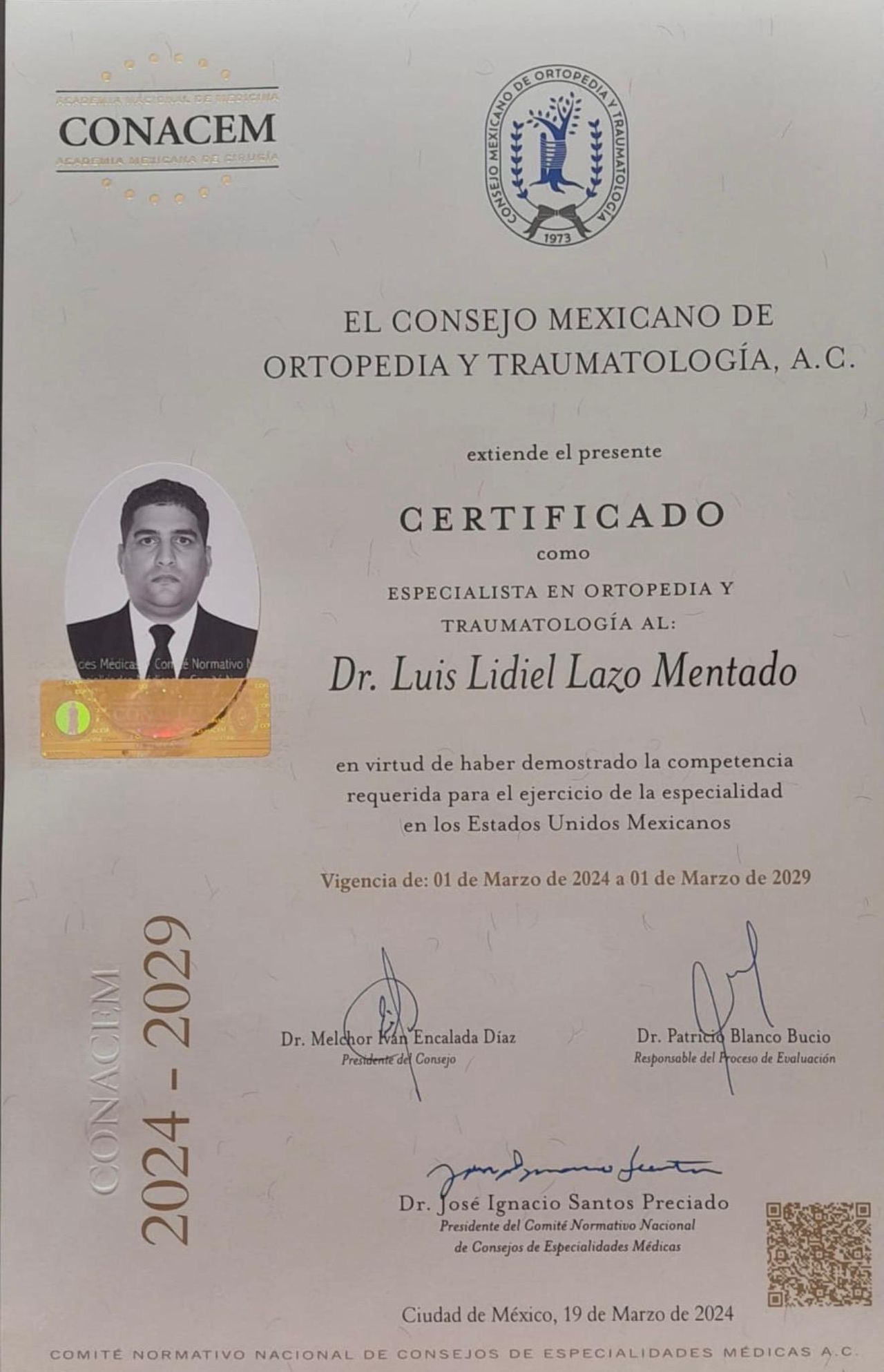 7 opinionesDr. Luis lidiel Lazo soy especialista en Ortopedia y Traumatología, enfocado en el diagnóstico y tratamiento de enfermedades y lesiones del sistema musculoesquelético como dolor de rodilla, hombro, columna, fracturas, esguinces, lesiones deportivas, desgaste articular (artrosis), hernias de disco, fascitis plantar y síndrome del túnel carpiano.