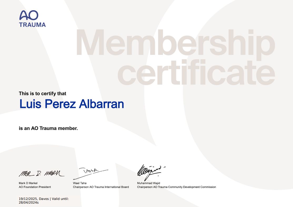Hola, soy el Dr. Luis Manuel Pérez Albarrán, traumatólogo y ortopedista egresado de la UNAM, con más de 6 años de experiencia en el diagnóstico y tratamiento de lesiones musculoesqueléticas. Realicé mi especialidad en el Hospital de Traumatología y Ortopedia Lomas Verdes, estoy certificado por el Consejo Mexicano de Ortopedia y soy miembro de AO Foundation.