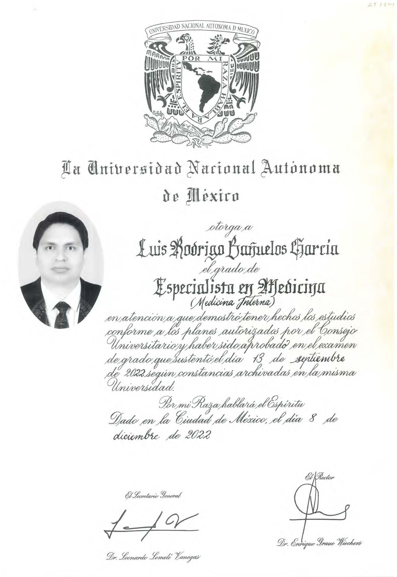 Formación en Medicina Interna en Centro Medico Nacional La Raza, en el Hospital de Especialidades avalado por la Universidad Nacional Autónoma de Mexico, certificado por el Consejo Mexicano de Medicina Interna. Experto en enfermedades del calcio: Osteoporosis, litiasis renal, hipoparatirodismo, hiperparatirodismo.
