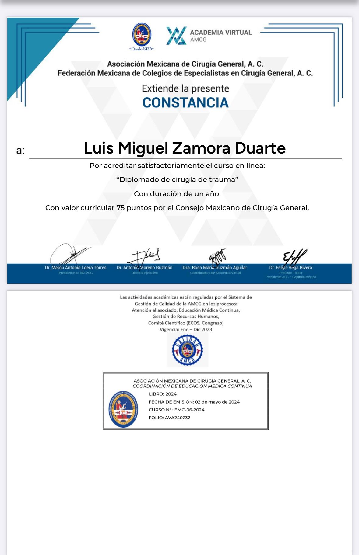 Tuve la oportunidad de ser atendida por el Dr. Luis Miguel Zamora, deseo expresar mi más sincero reconocimiento a su profesionalismo y calidad humana. Desde el primer momento mostró un trato cálido, respetuoso y empático, generando un ambiente de confianza fundamental para cualquier paciente.