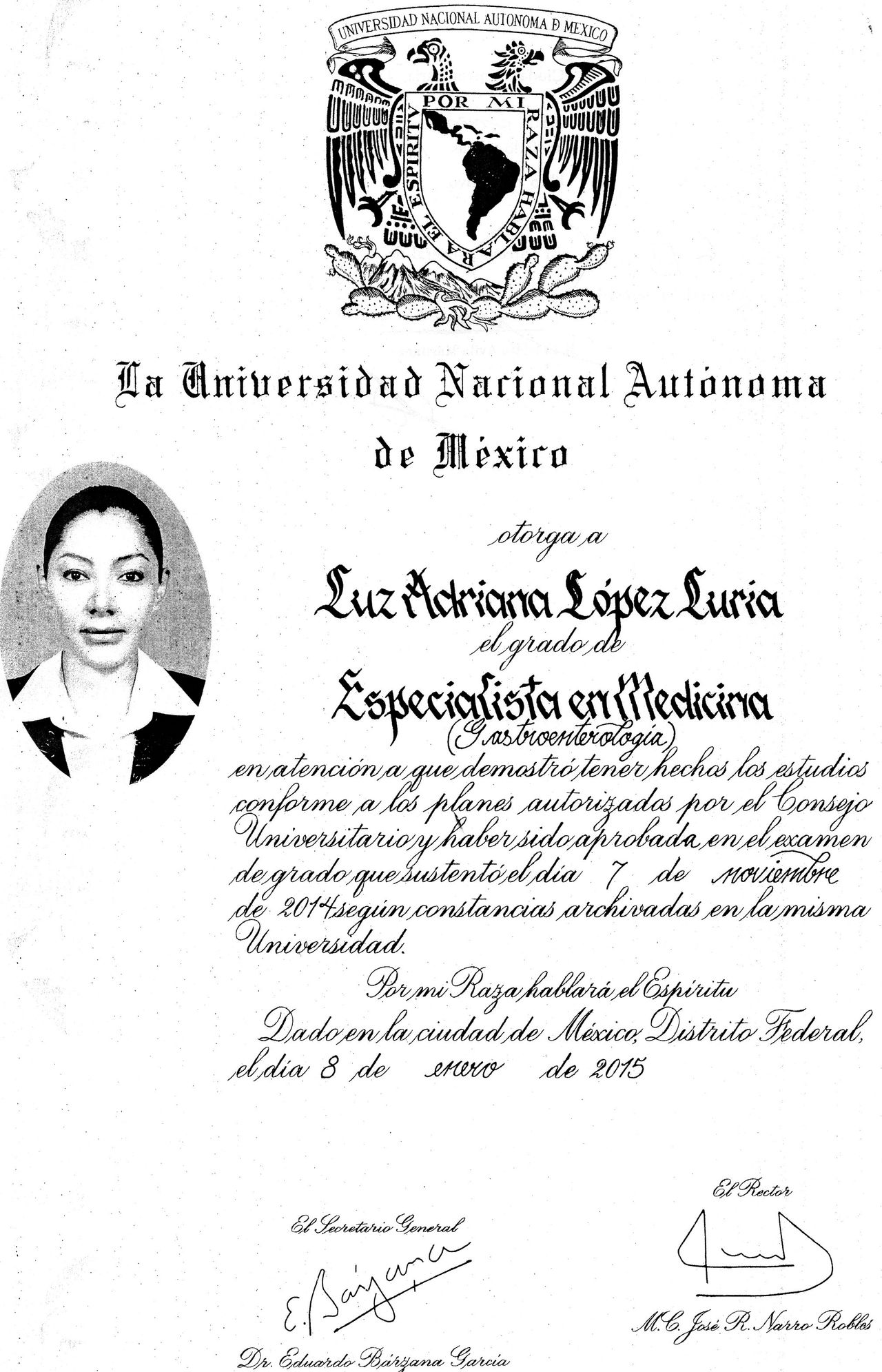 Estoy re-certificada por el Consejo Mexicana de Gastroenterología 20-25, y miembro activo de la AMG ASOCIACIÓN MEXICANA DE GASTROENTEROLOGÍA)