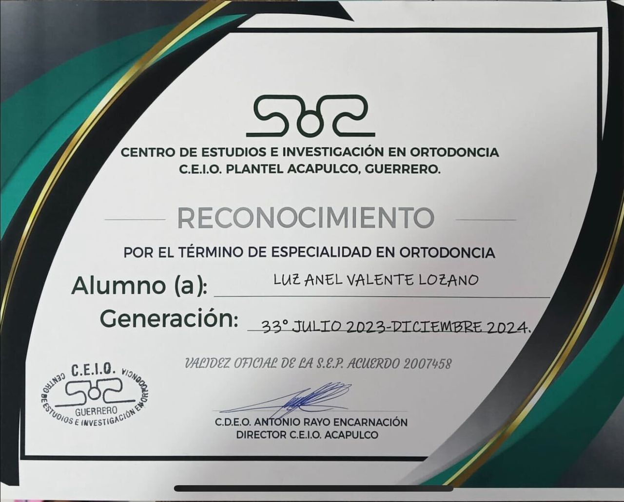 Especialidad en Ortodoncia en el Centro de Estudios en Investigación en Ortodoncia (CEIO).