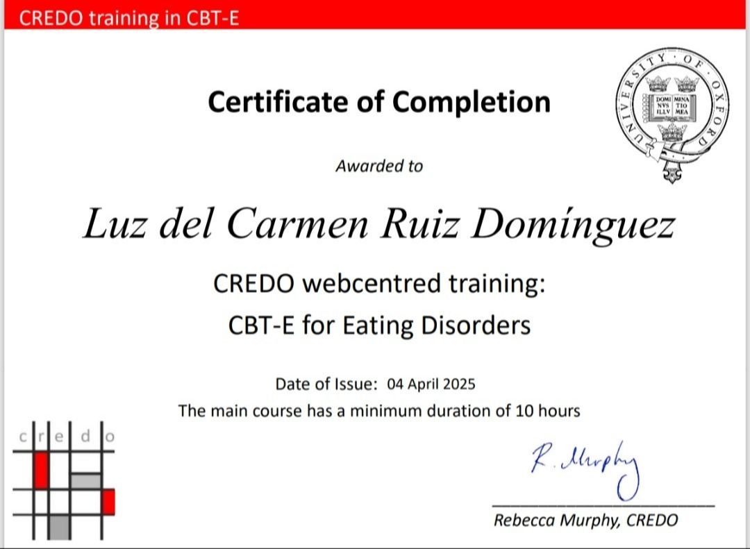 Mi prioridad es crear un ambiente de confianza, libre de prejuicios y siempre abordado desde la empatía y escucha activa, brindando acompañamiento a mis pacientes para apoyarlos en este proceso de comprensión y manejo de emociones buscando siempre su bienestar. Utilizando el enfoque cognitivo-conductual con una visión desde la neurodivergencia, logaremos reestructurar estos pensamientos negativos y aliviar este malestar.