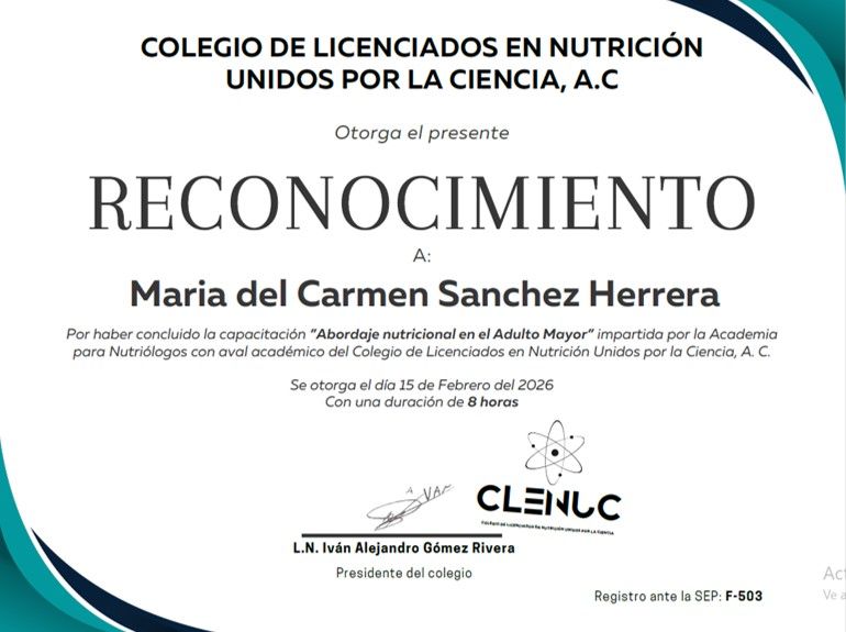 Certificada en Tratamiento Integral de la Obesidad | Academia Mexicana de Nutrición y Dietética / Colegio de Nutriólogos de Guerrero
