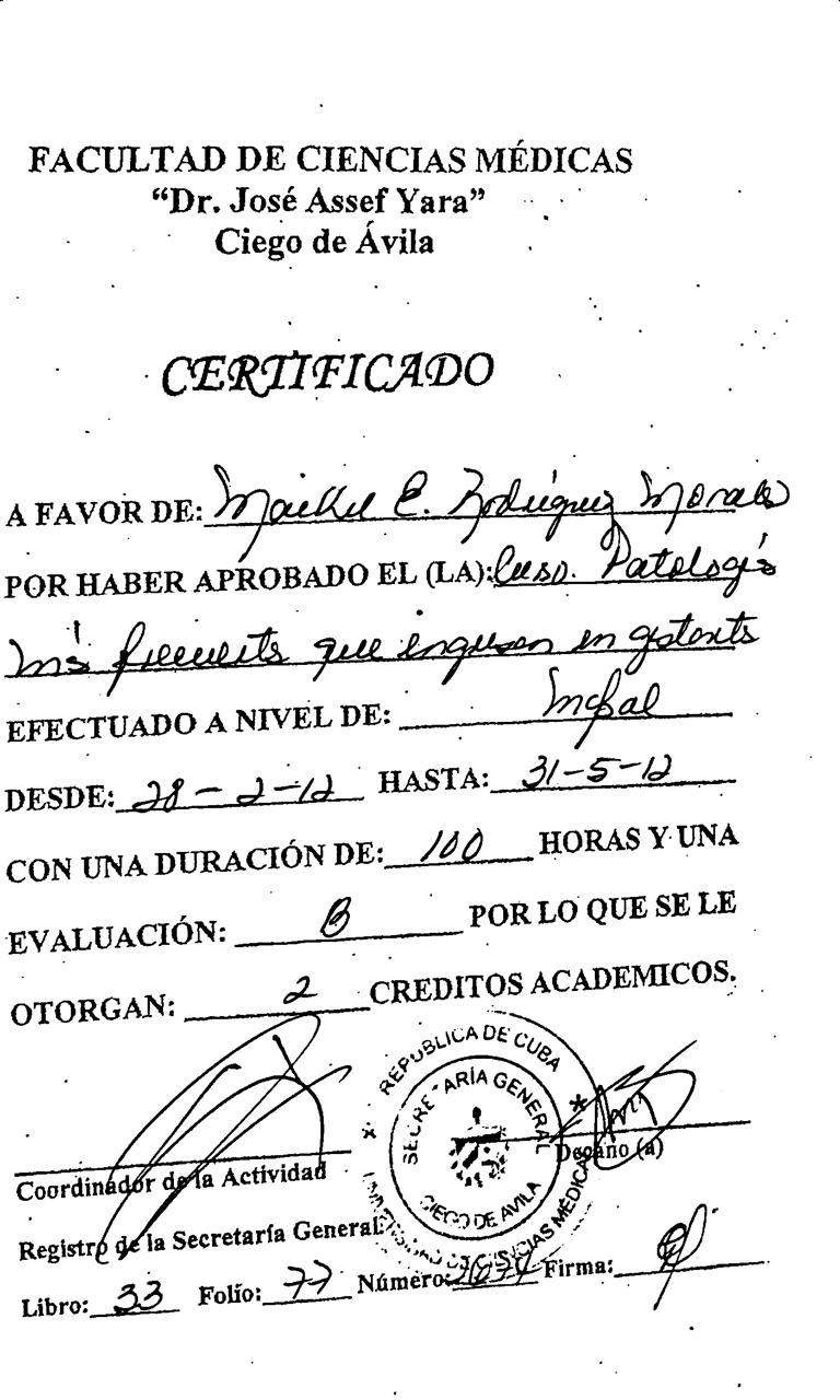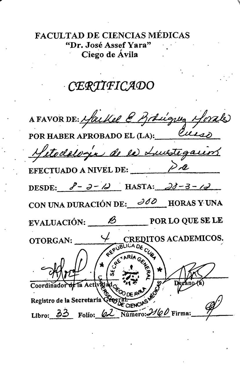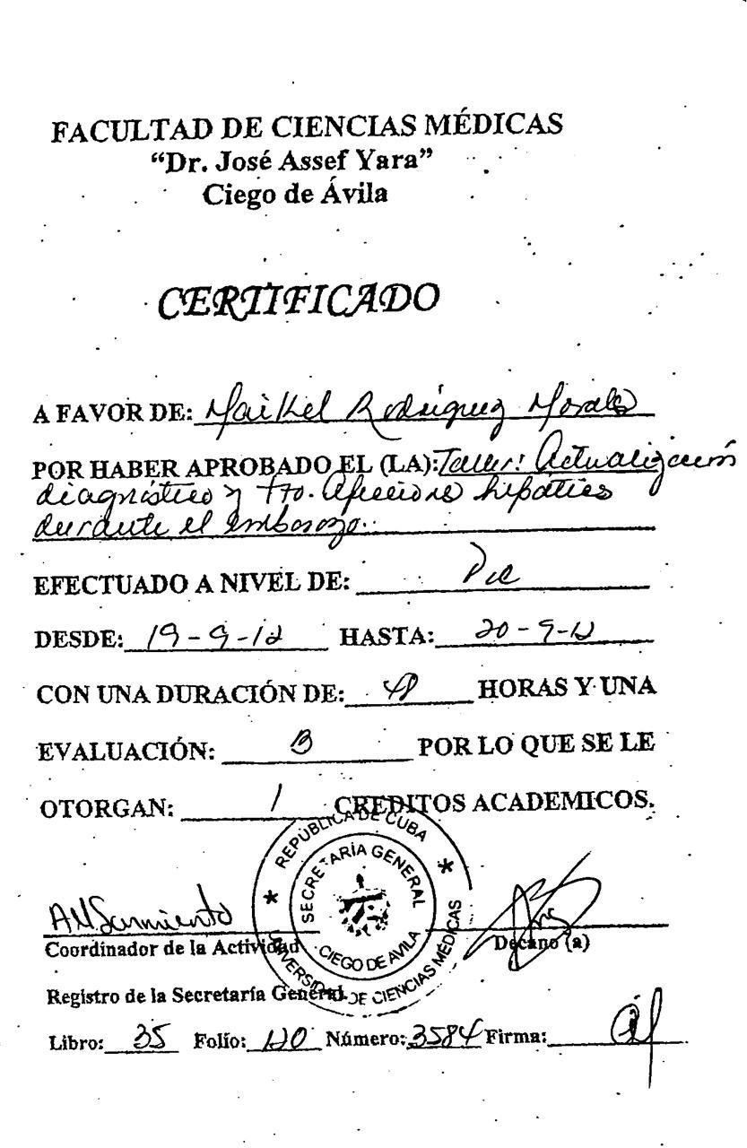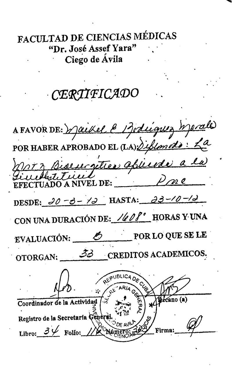 Doctor en Medicina por la Universidad de Ciencias Médicas de Ciego de Ávila, Cuba