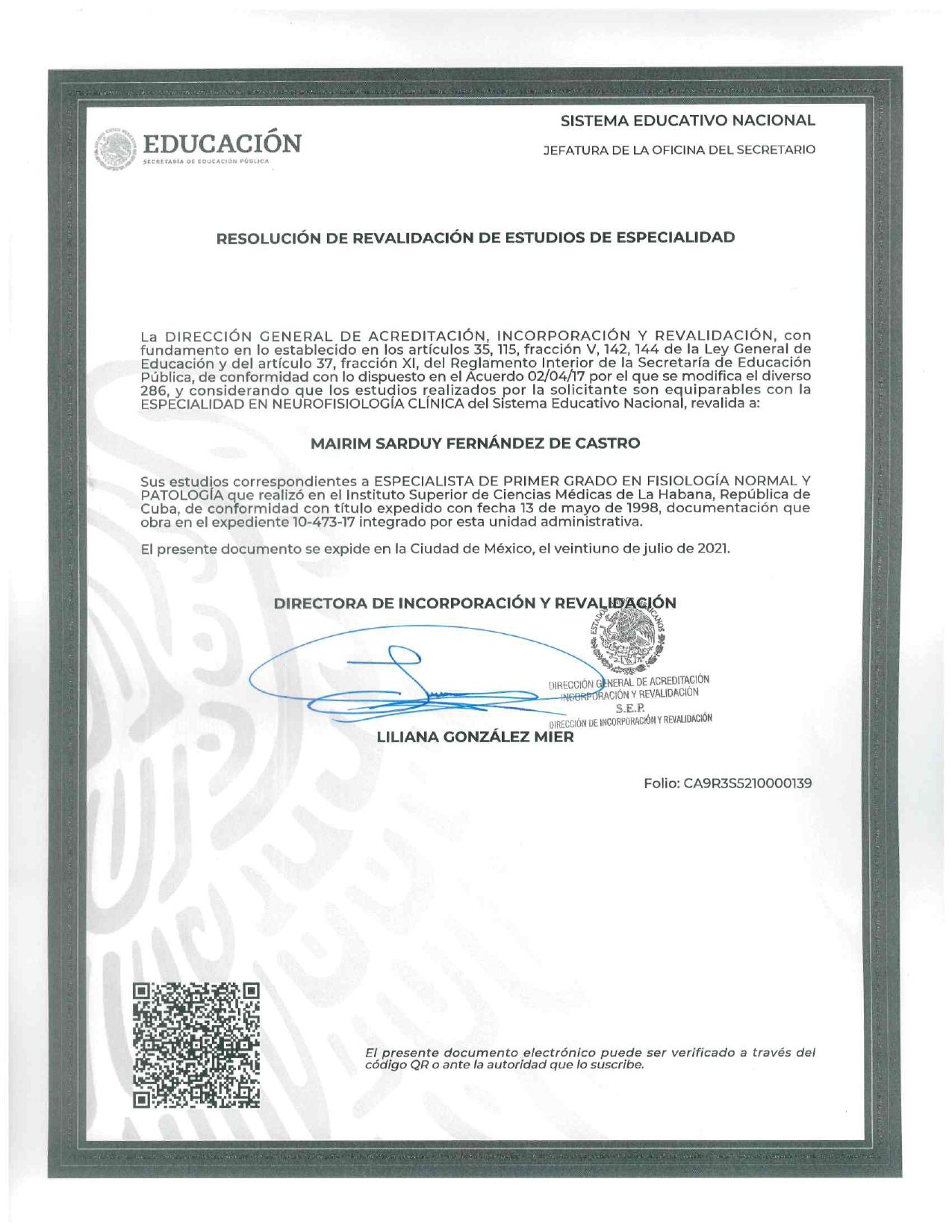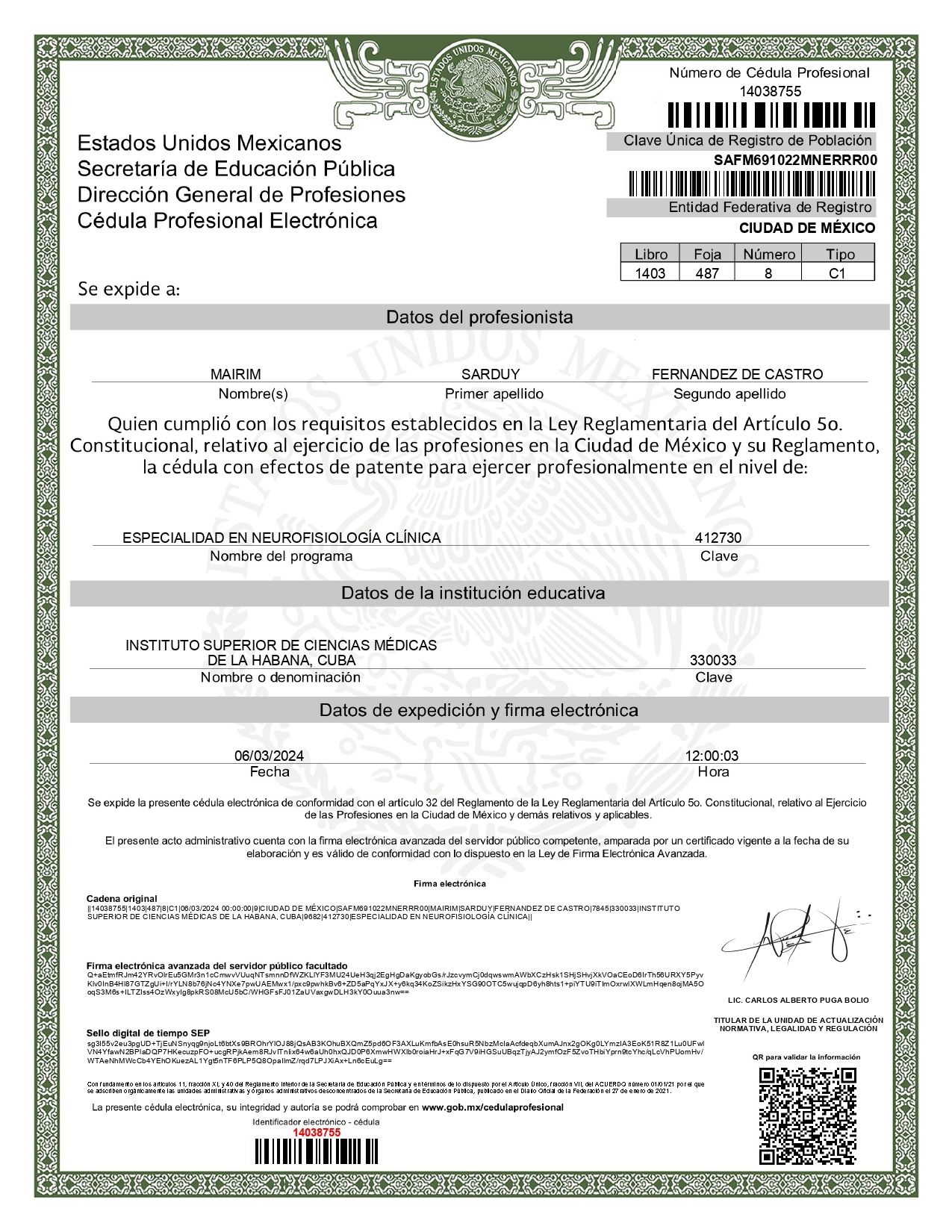 Desde 1998 radica en la Ciudad de México donde ha trabajado para importantes laboratorios como jefa del Área de Neurofisología y Estudios del Sueño. Su pasión en lo que hace y el desempeño profesional que la caracteriza, contribuyen a que sea parte de un grupo de especialista éticos y enfocados en el cuidado constante de la salud de sus pacientes.