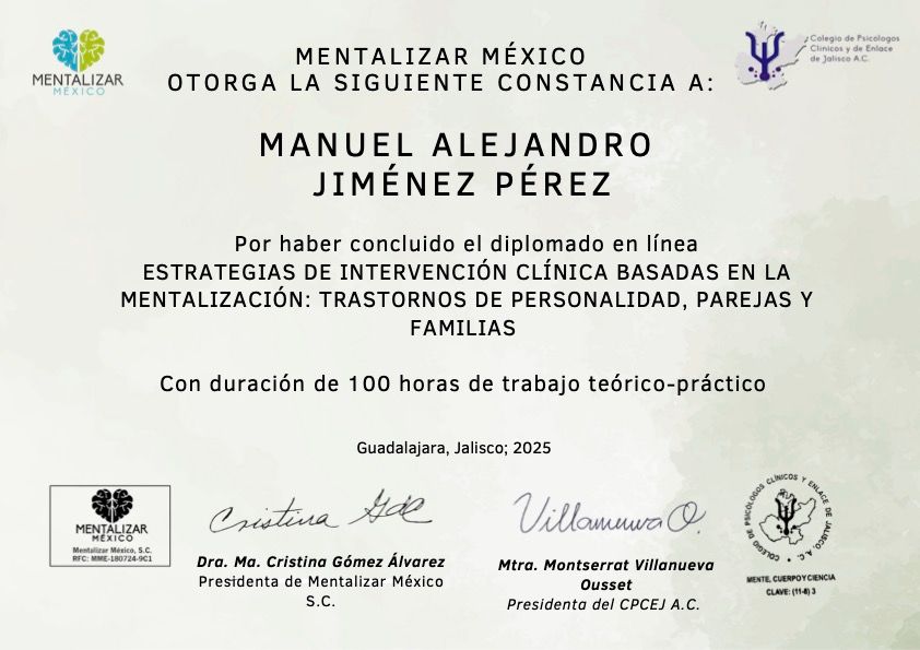 Terminando diplomado en Psicoterapia basada en Mentalización :)