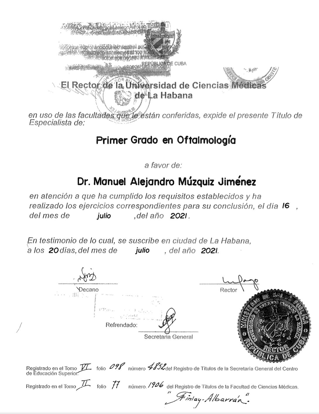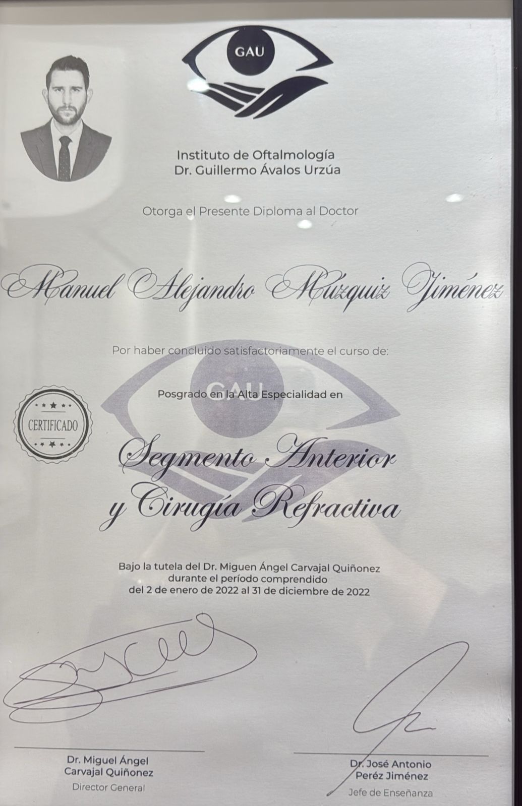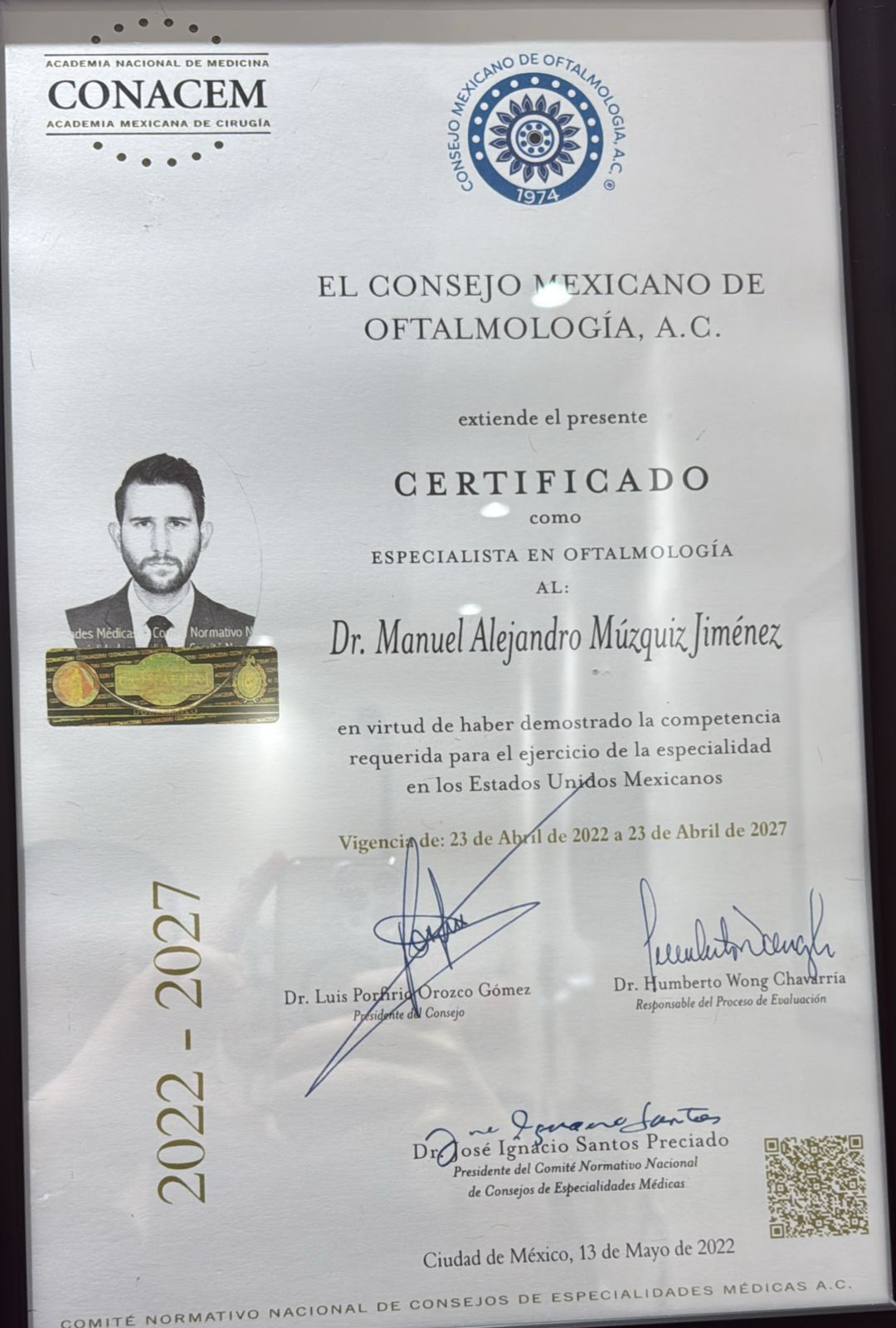 El Dr. Manuel muy amable y atento siempre a sus pacientes, se muestra su preparación y conocimiento. Muestra confianza como profesionista y está súper actualizado y preparado en la oftalmología, lo recomendamos al 100%. En nuestra ciudad no contábamos con oftalmólogo así que estamos felices que él está aquí.