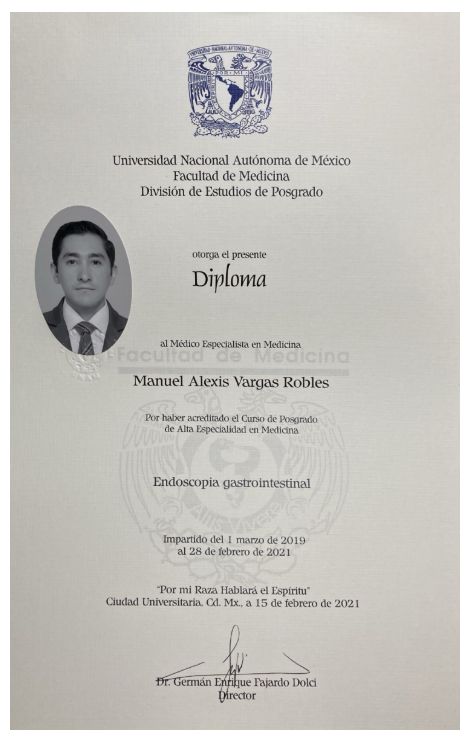 Posteriormente mi Alta Especialidad (Fellowship) en Endoscopía Gastrointestinal en el Hospital Central Norte de PEMEX y Actualmente me desarrollo como: