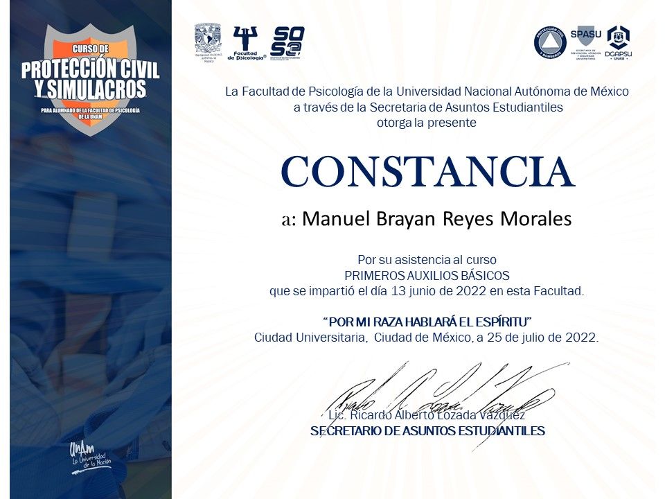 Formación en la UNAM. Realicé mis prácticas profesionales y servicio social por 2 años y medio en el Hospital General de México "Eduardo Licáega" en el área de Neurocirugía.