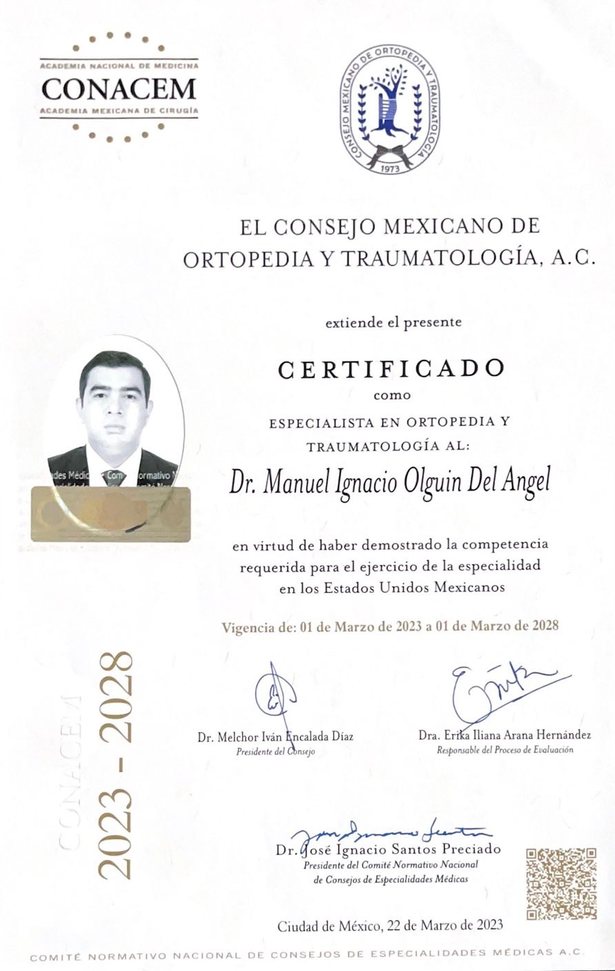 • Dr. Manuel Ignacio Olguín del Ángel. Traumatología, Ortopedia, Cirugía Articular. Clínica Hospital del Valle • Otro •