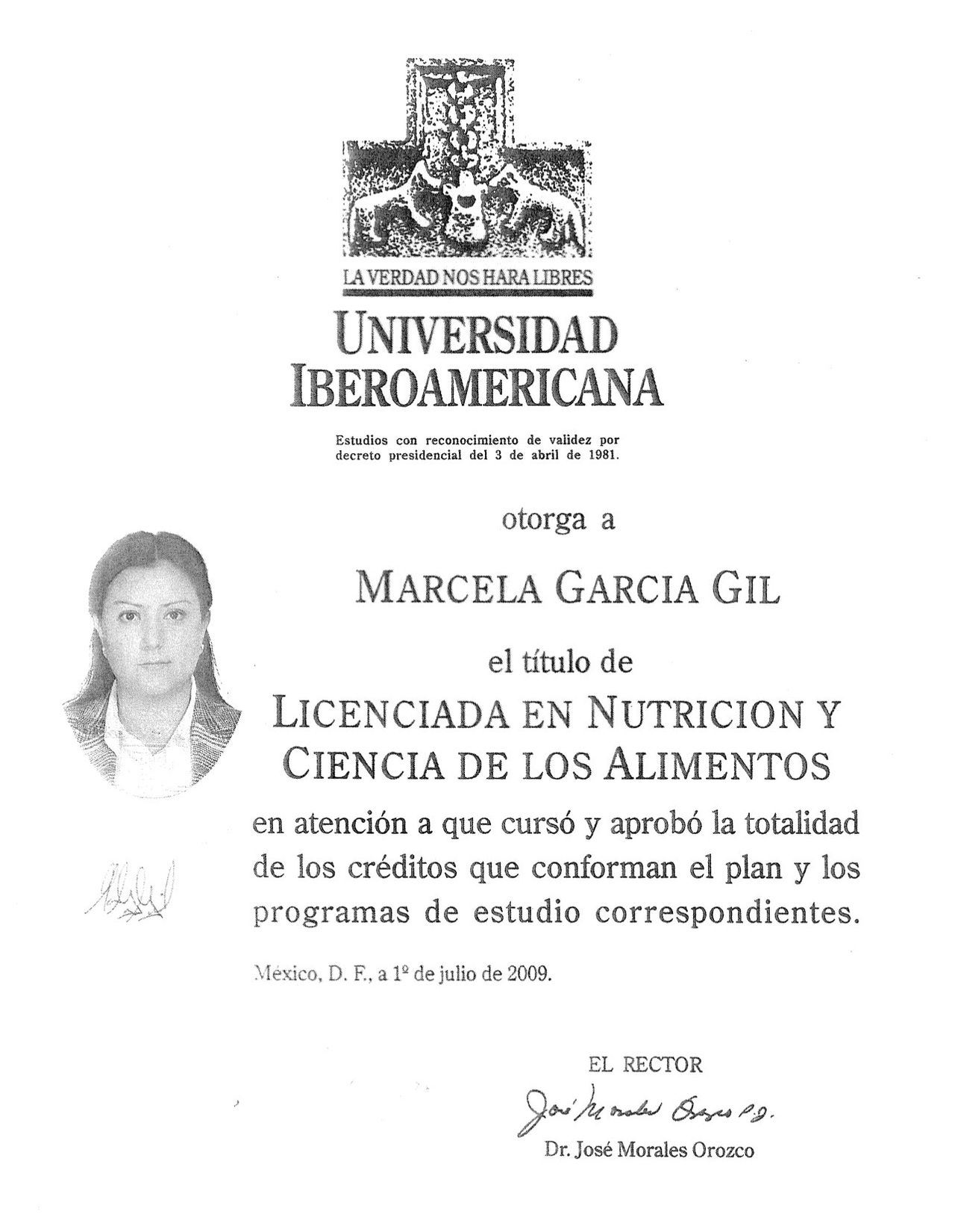 Estudié la licenciatura de Nutrición y Ciencia de los Alimentos en la Universidad Iberoamericana de la Ciudad de México.