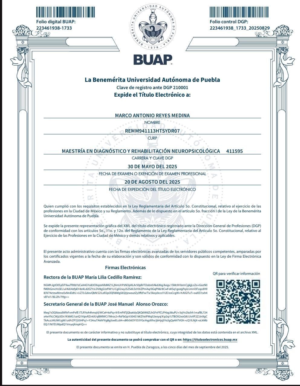 A lo largo de mi experiencia, he comprendido que cada mente funciona de una manera única y especial. Mi labor como neuropsicólogo se centra en entender cómo el cerebro influye en la conducta, las emociones y el aprendizaje, para acompañarte de forma cercana y profesional en tu proceso de diagnóstico y rehabilitación.