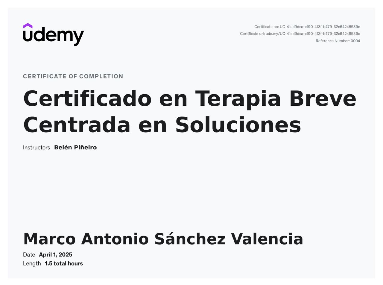 Conoci a Marco en una Clinica, me gusto como nos trataba. Inmediatamente le pedi su contacto para continuar sessiones privadas fuera de la clinica. Es muy atento, puntual y de verdad se preocupa por los pacientes. Marco tiene mucha experiencia en su area. Es dificil para mi encontrar un Psicologo que me muestre confianza y que llene mis requisitos personales; Marco es genial!