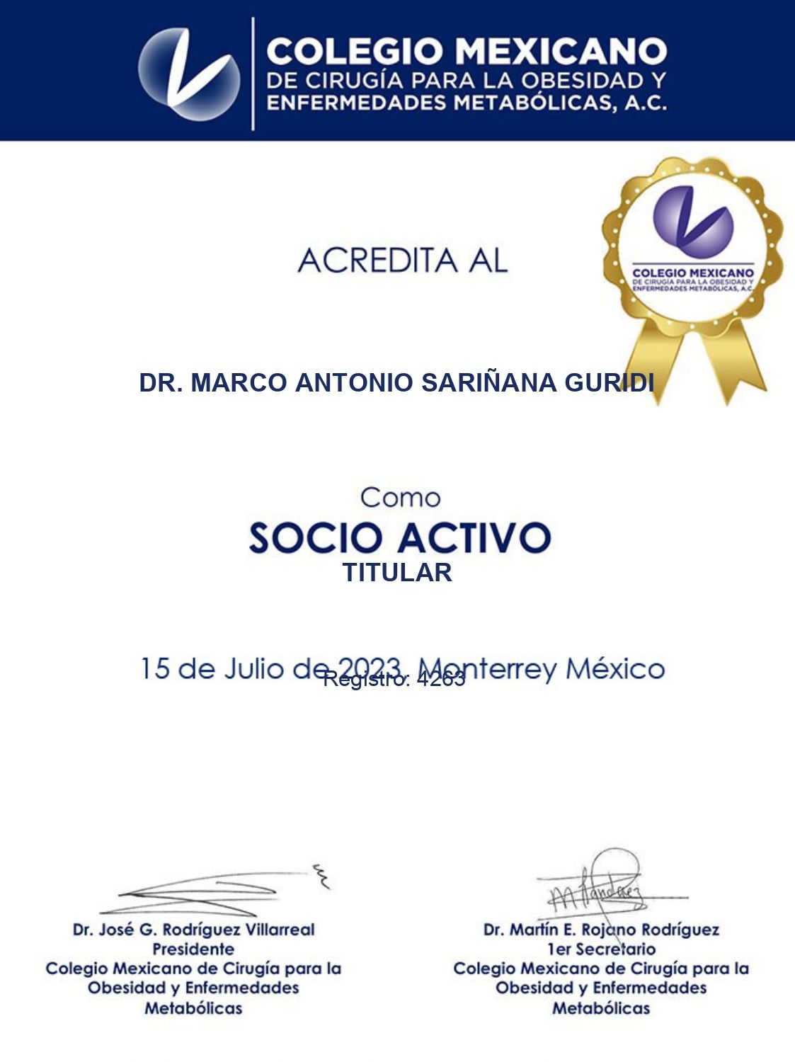 Con el Dr. Sariñana, cirujano bariátrico con amplia experiencia, estarás en manos expertas durante todo tu proceso.