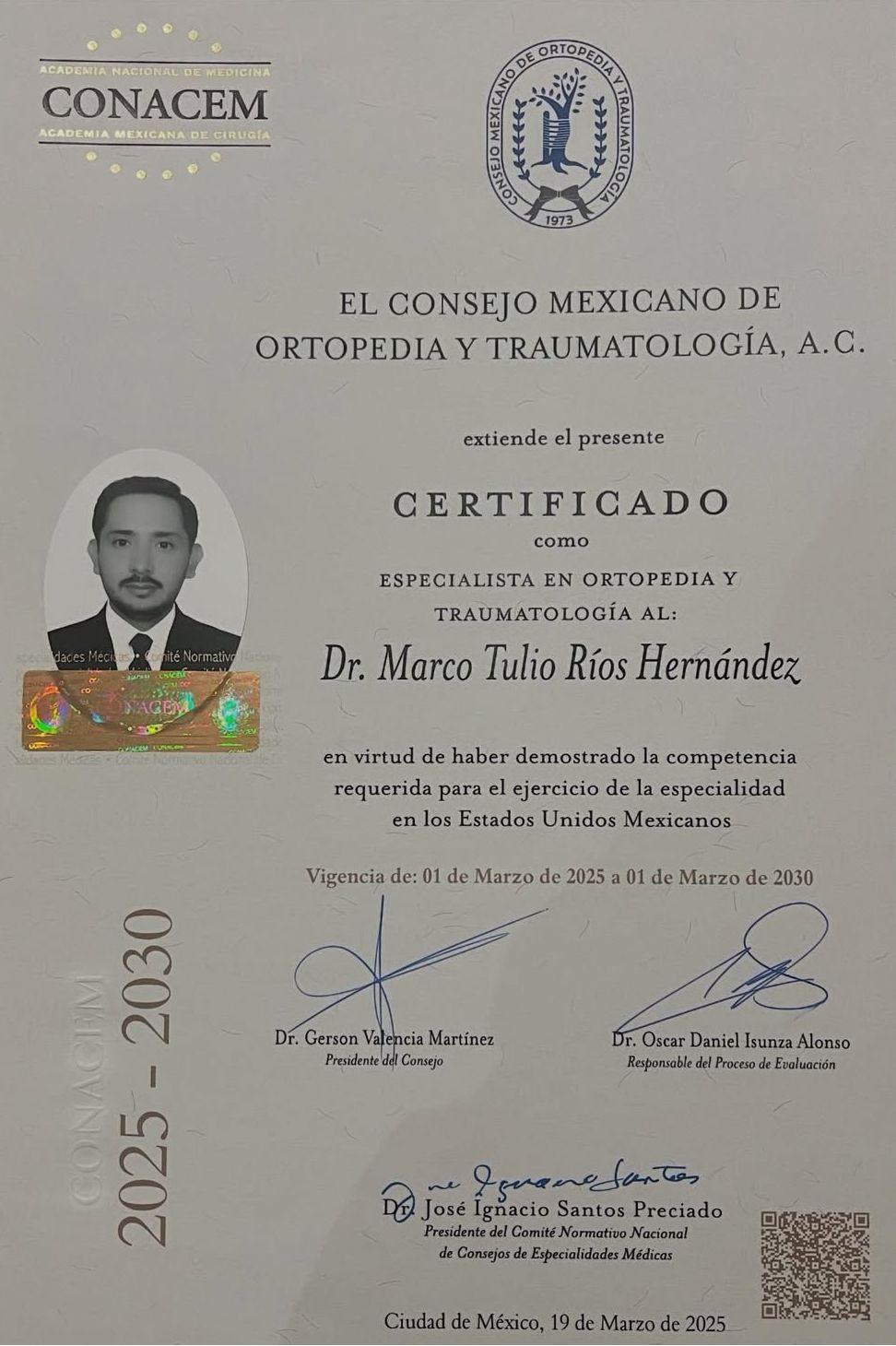 Soy el Dr. Marco Tulio Ríos Hernández, especialista en Traumatología y Ortopedia.