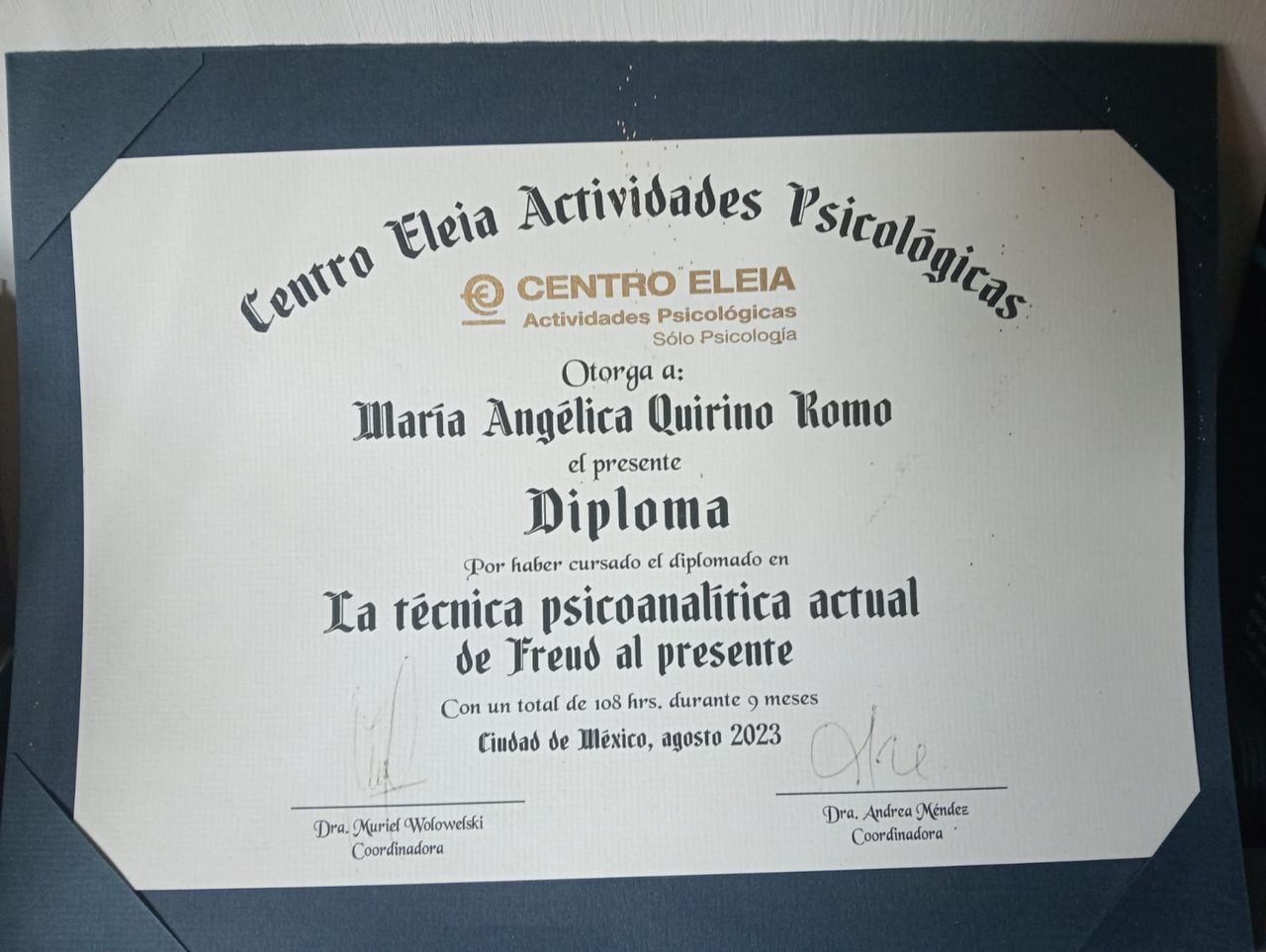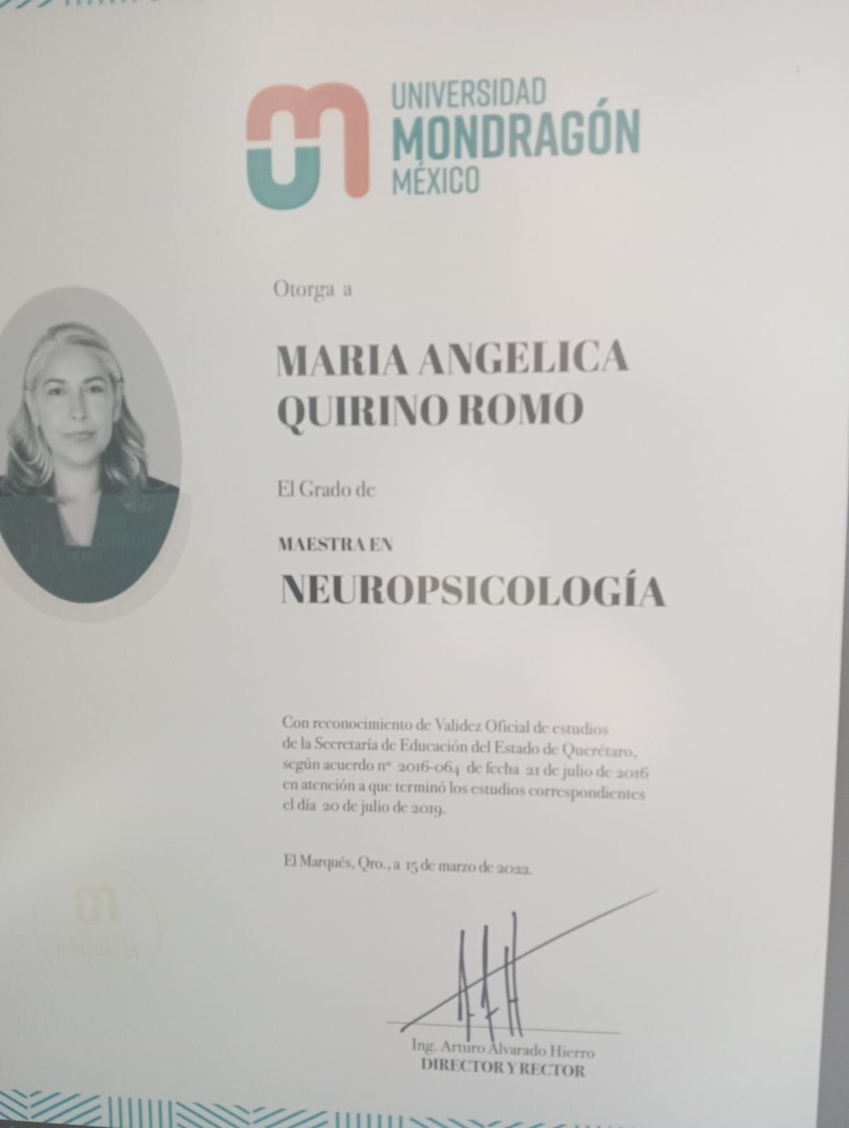 Licenciatura en Psicología por la UNAM, Maestría en Psicología con Residencia en Terapia Familiar por la UNAM, Maestranda en Neuropsicología, Especialista en Hipnosis Clínica con Aval de la UNAM.