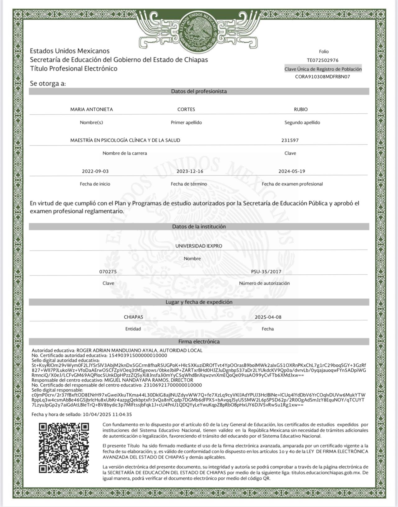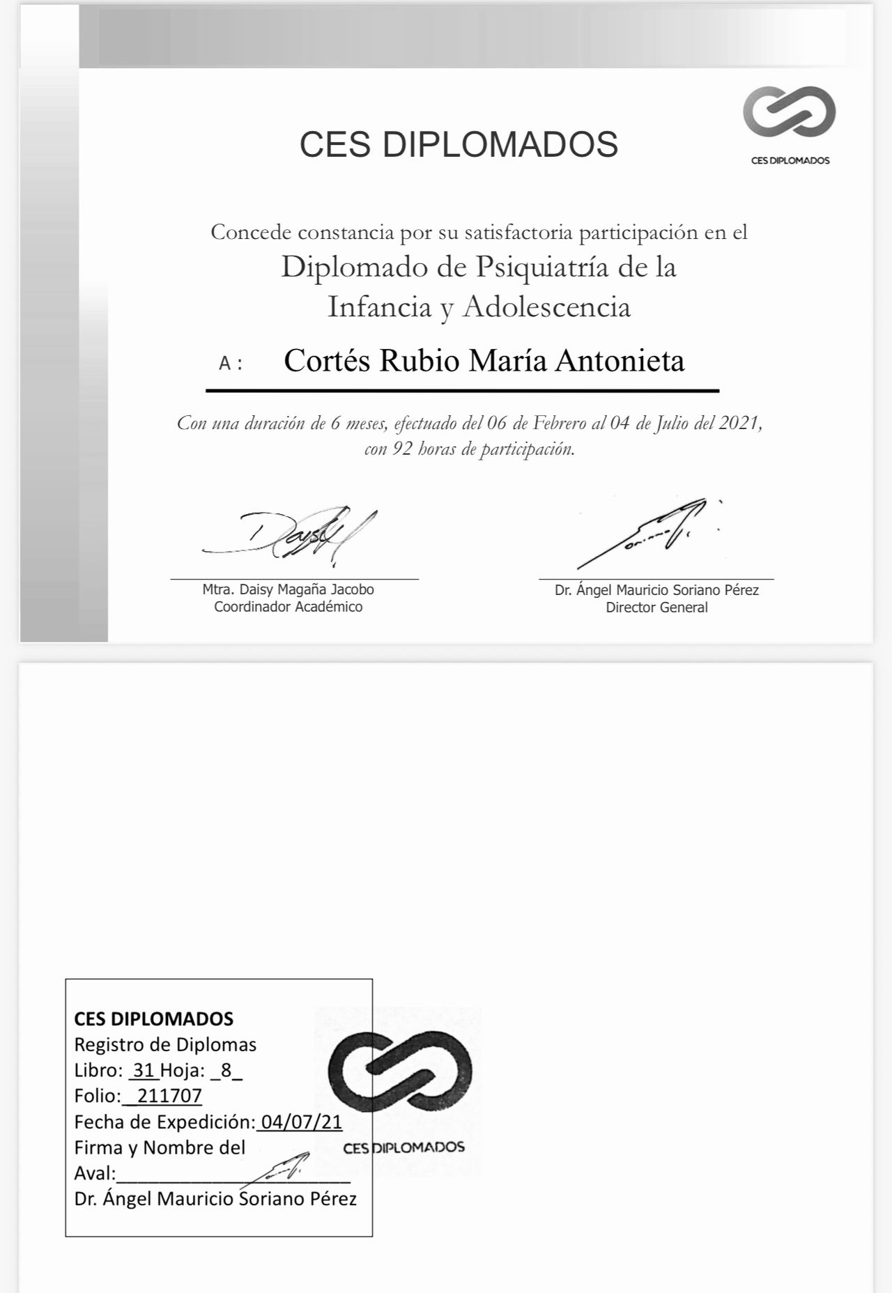 • CERTIFICADO DE SALUD MENTAL