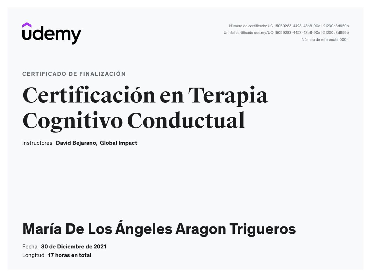 Actualmente se especializa en la atención individual desde un enfoque Cognitivo Conductual, centrado en la identificación de patrones de pensamiento y conducta que afectan el bienestar emocional.