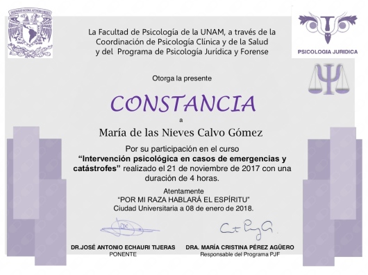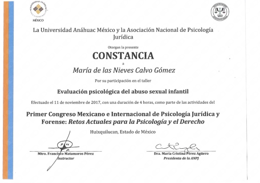 Perito auxiliar del Tribunal Superior de Justicia de la Ciudad de México, en especialidad de psicología infantil.