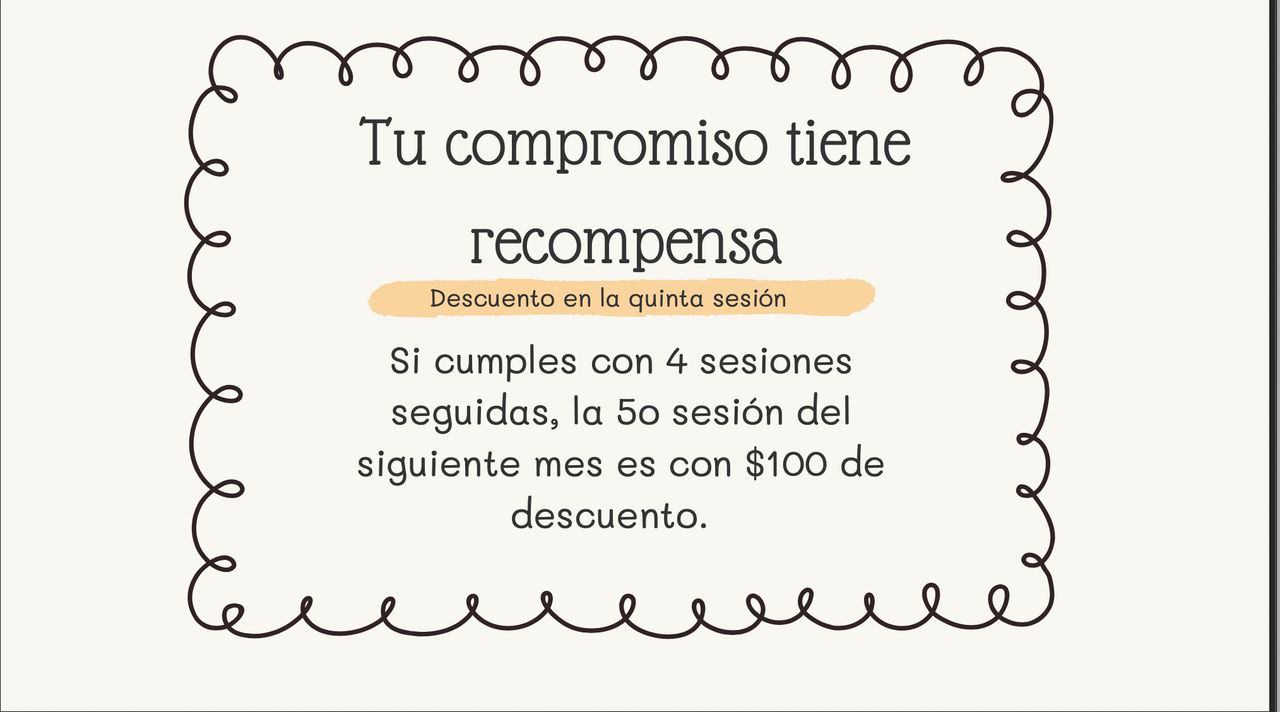 El costo de la sesión se tendrá que cubrir una hora antes de nuestra sesión.
