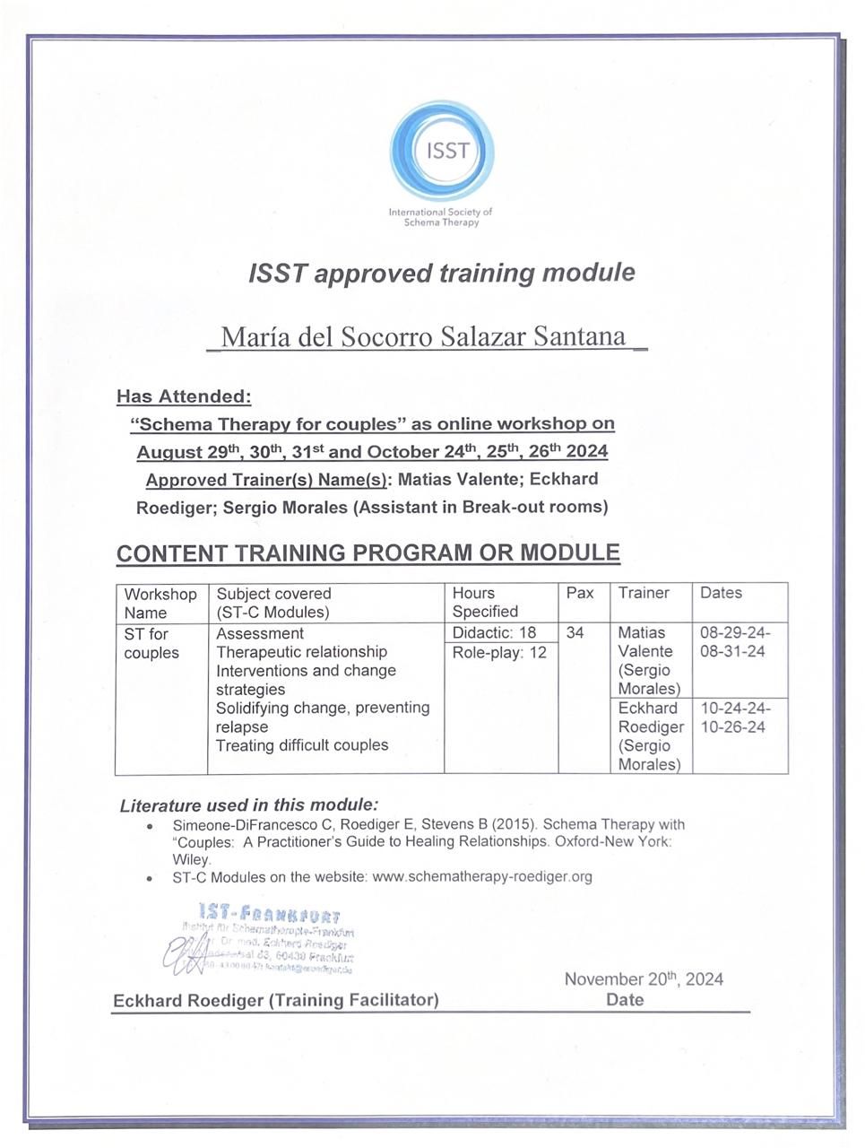 Sin duda la mejor psicoterapeuta con la que he asistido, su método de trabajo ha funcionado de maravilla con mi progreso, que es la terapia de esquemas