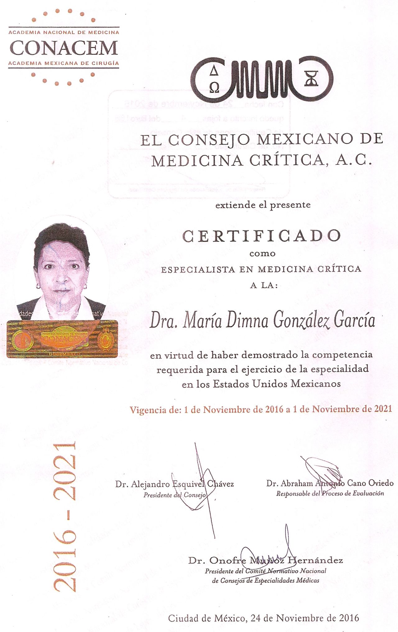 Especialista en Medicina Crítica y Terapia Intensiva,