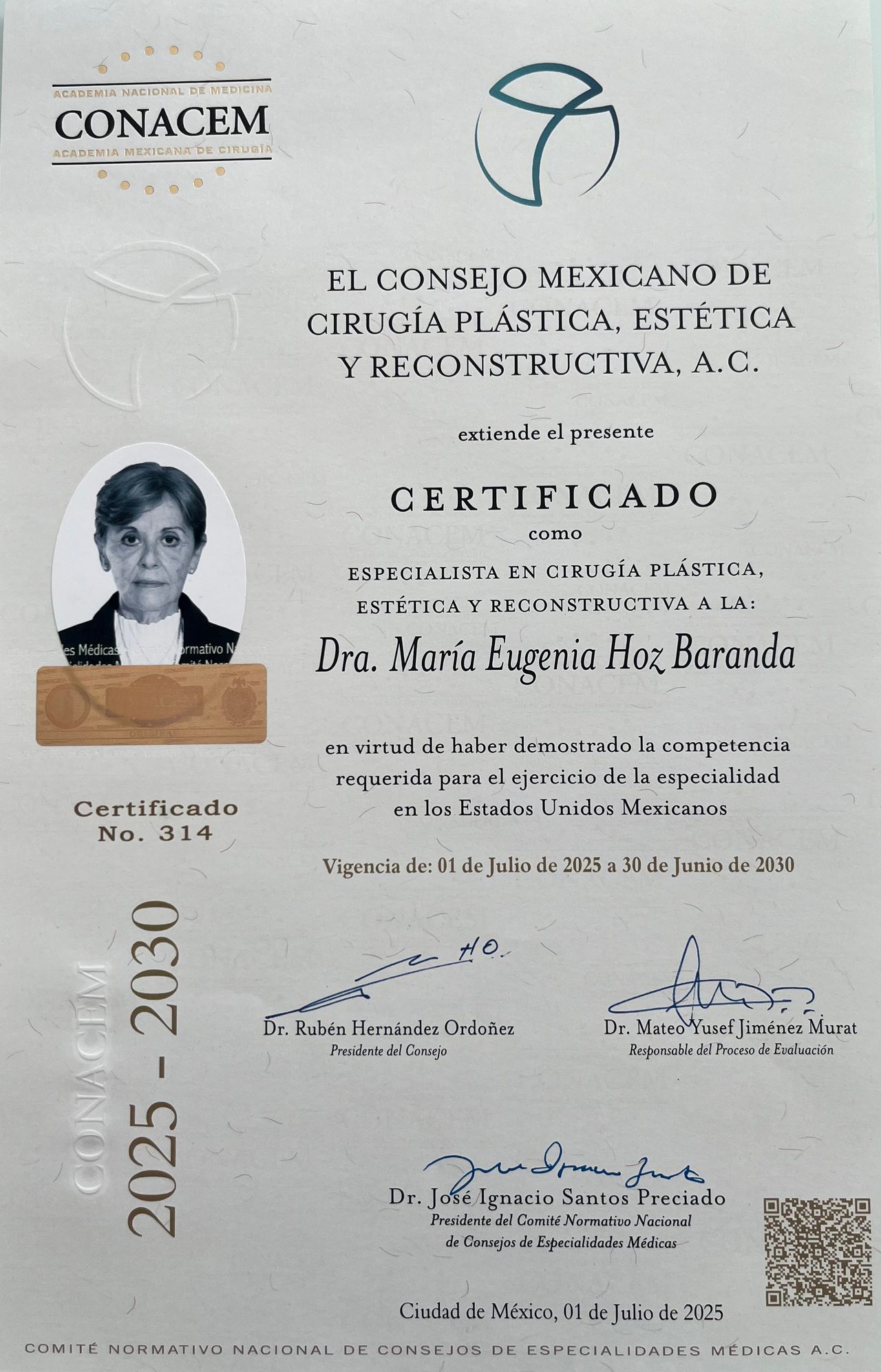 • DRA. M. EUGENIA HOZ BARANDA • Visitas sucesivas Cirugía Plástica •