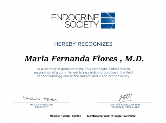 Miembro de la Sociedad de Endocrinología (Endocrine Society Membership No. 603214)