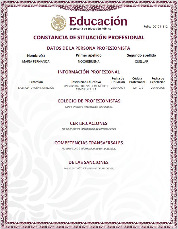 Exelente servicio y profesionalismo con la nutrióloga Nochebuena
