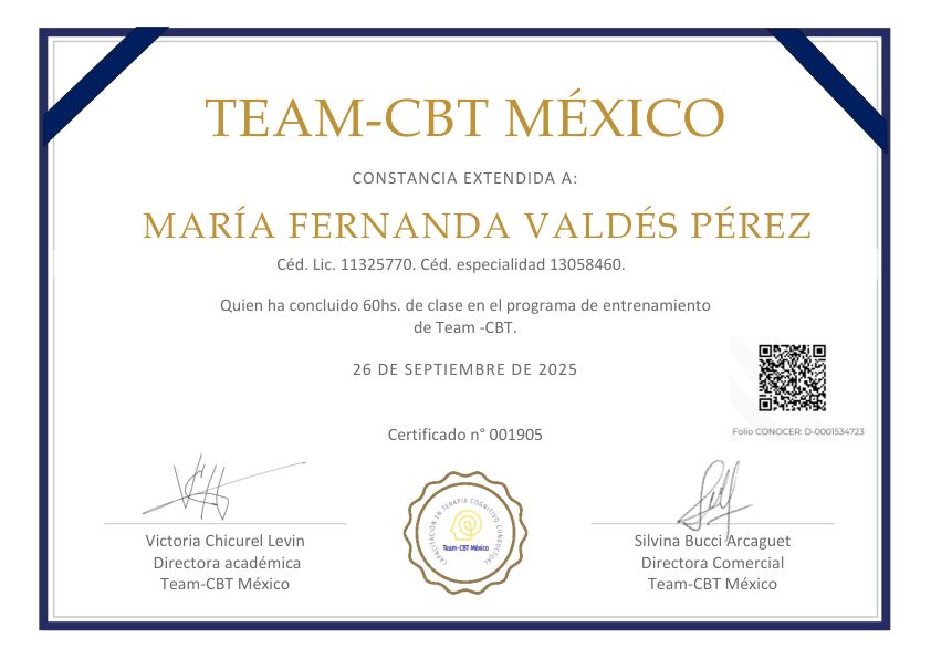 • Psicologa Maria Fernanda Valdes Perez • Terapia cognitivo-conductual (TCC) •