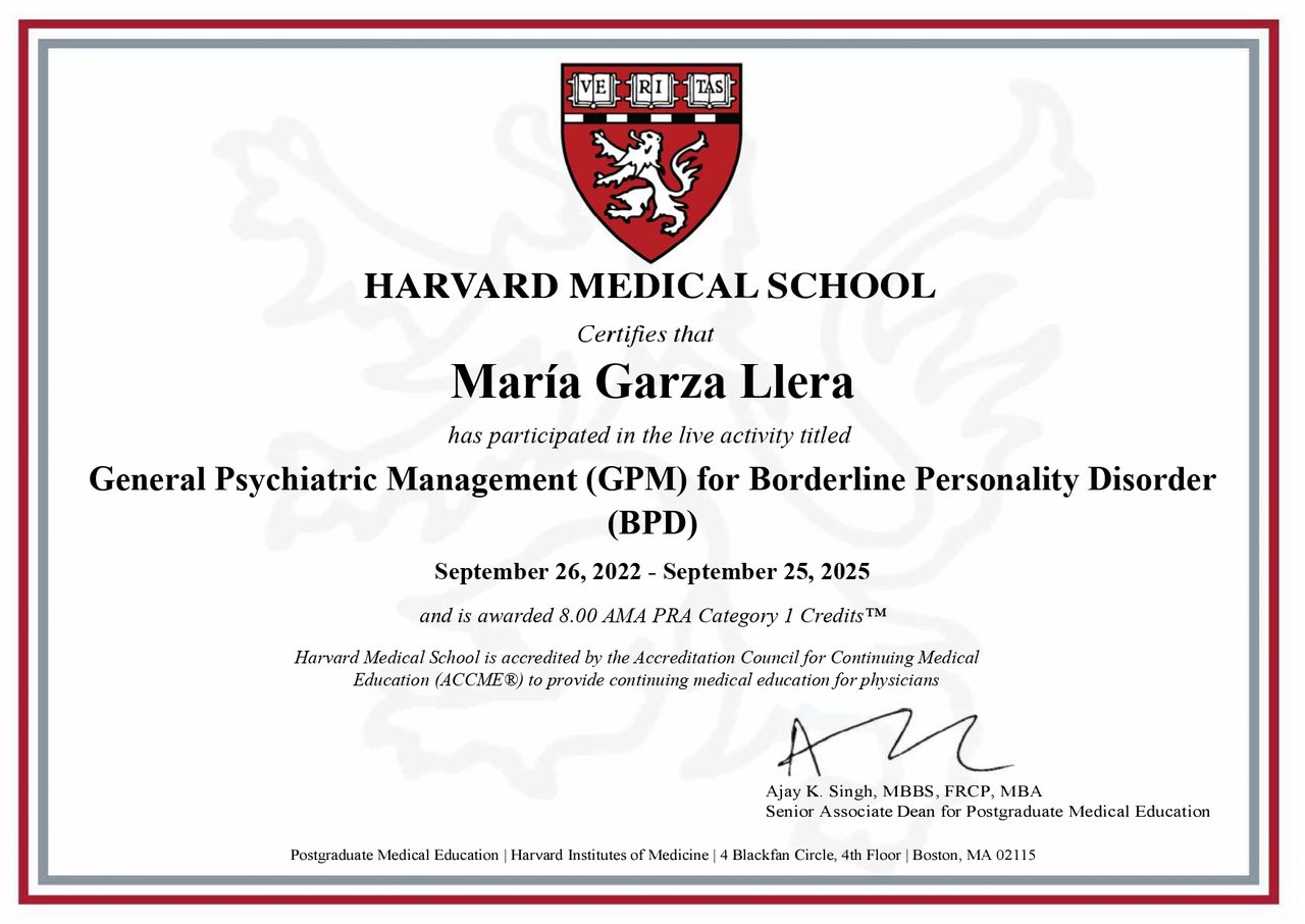 Manejo psiquiátrico general (GPM) para el trastorno límite de la personalidad por Harvard Medical School