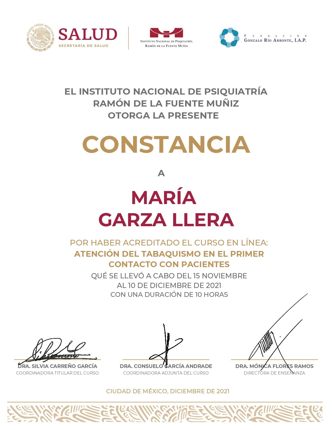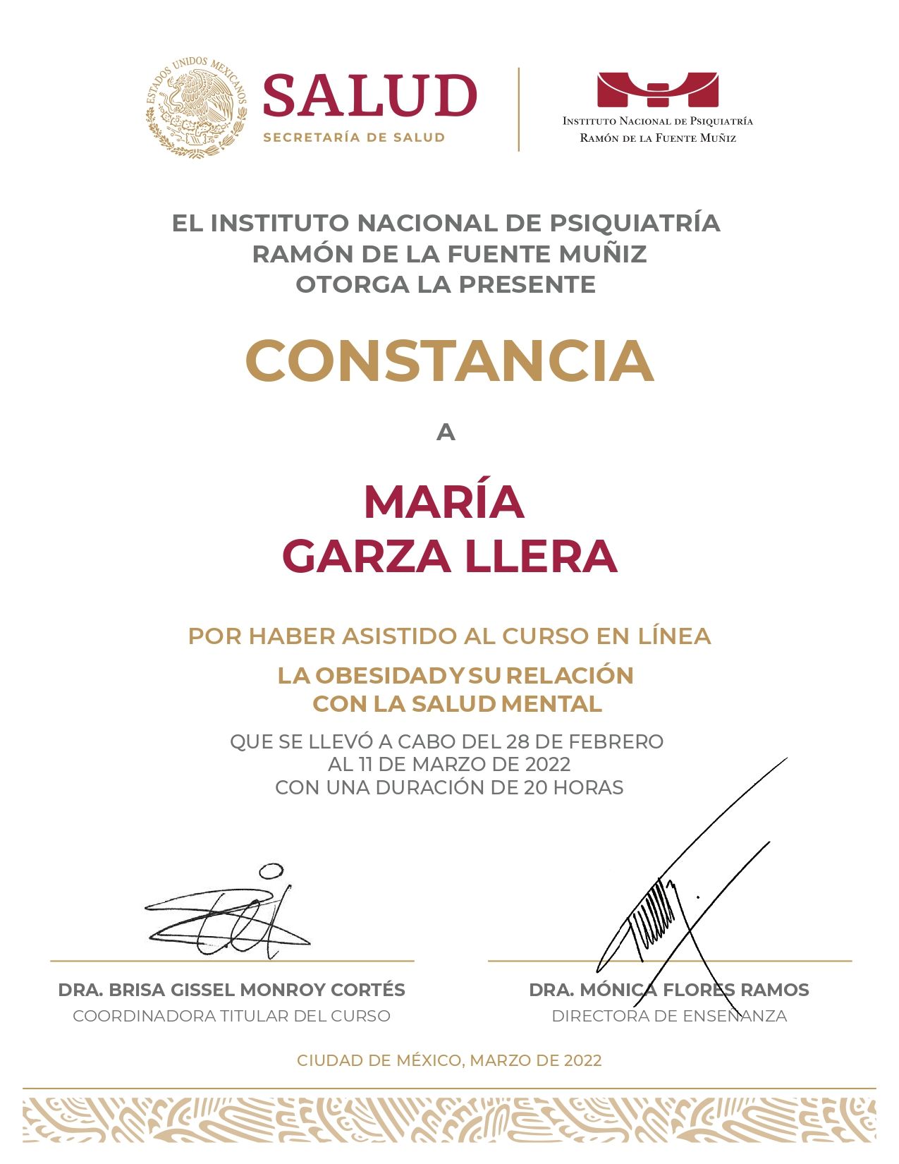 Certificada por el Consejo Mexicano de Psiquiatría