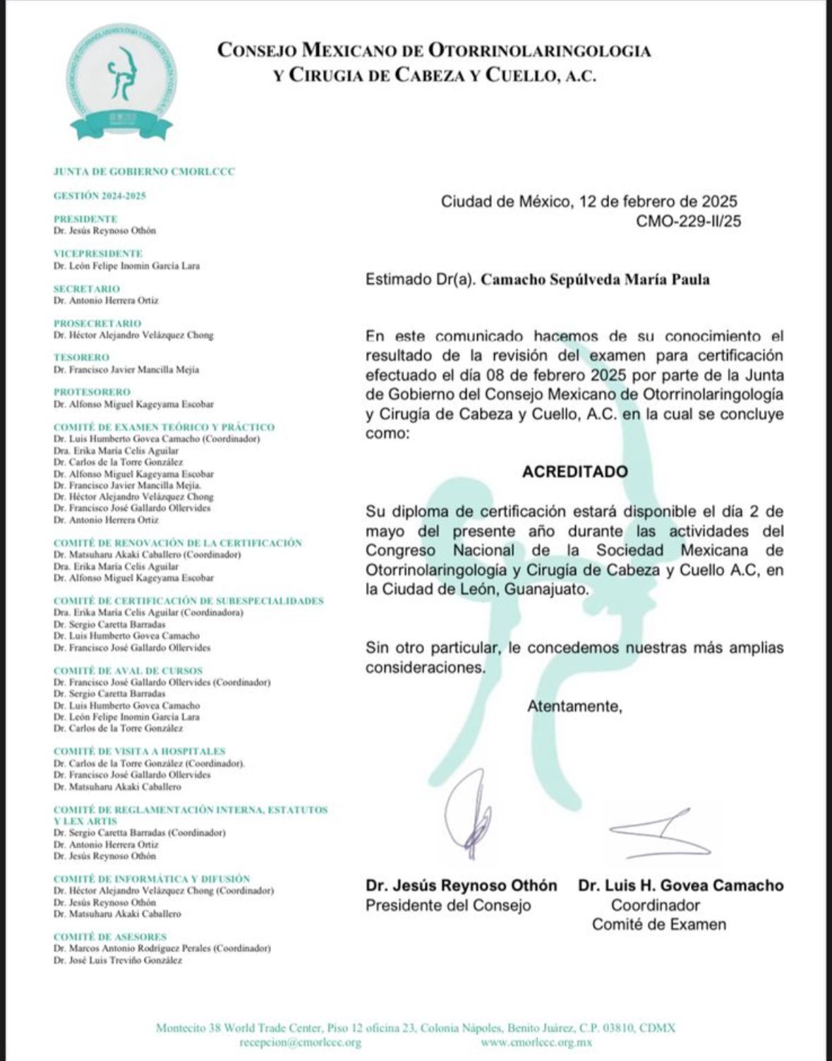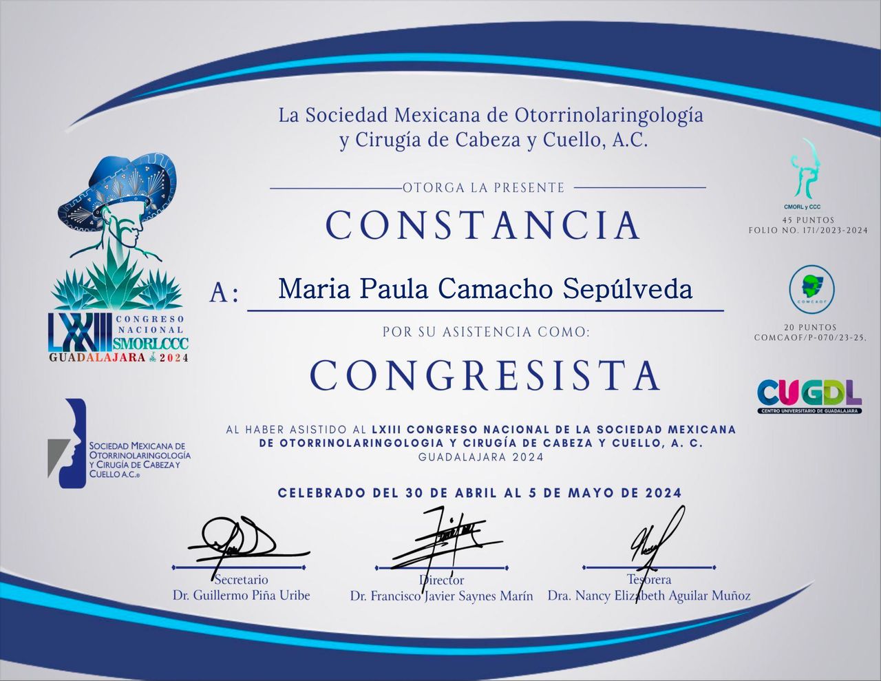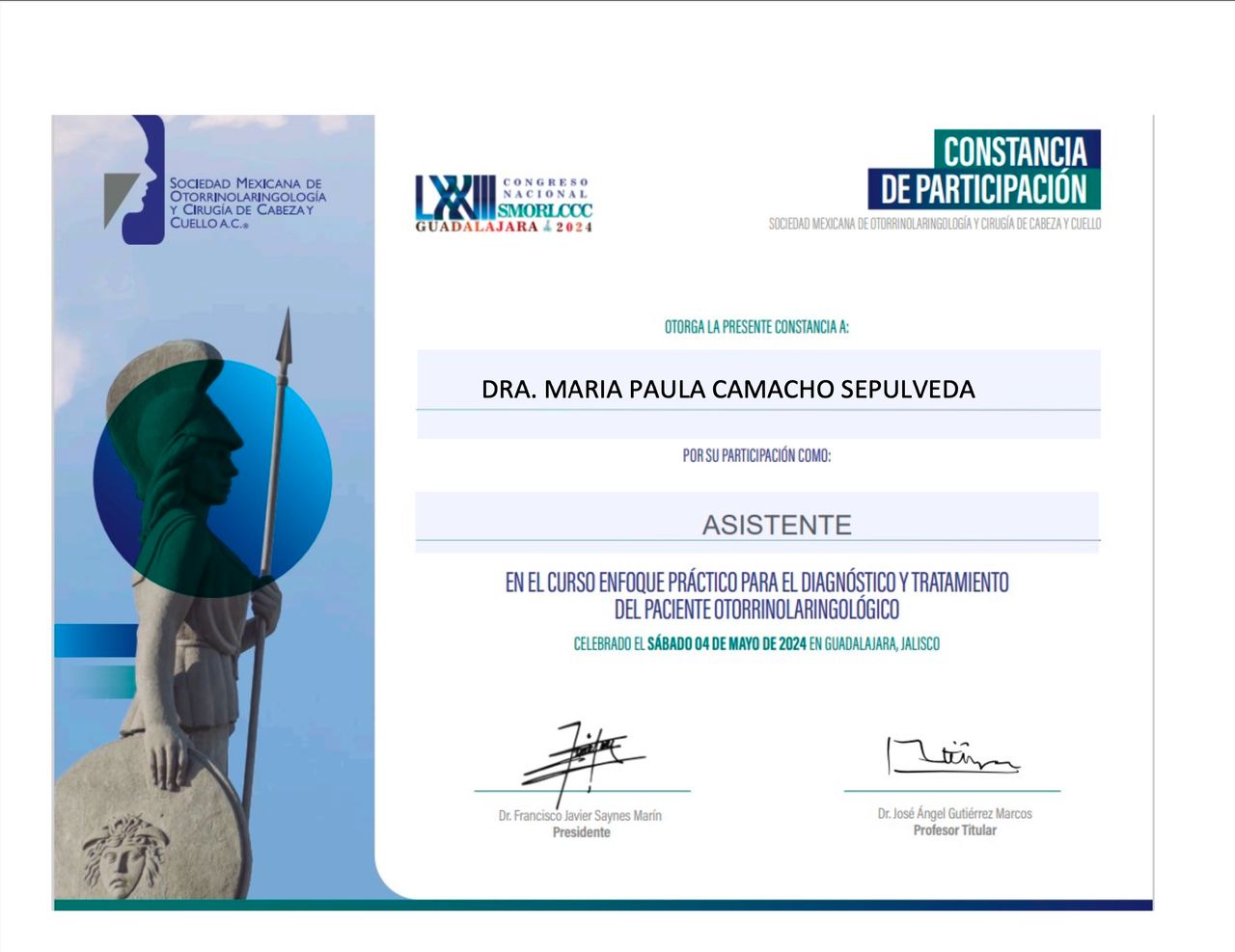 Soy la Dra. María Paula Camacho Sepúlveda , especialista en Otorrinolaringología y Cirugía de Cabeza y Cuello.