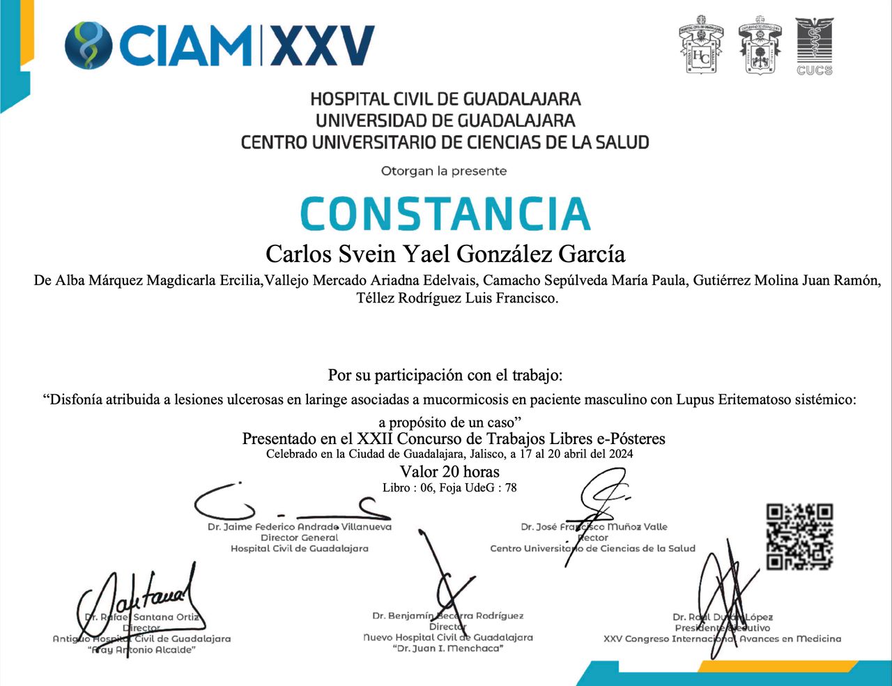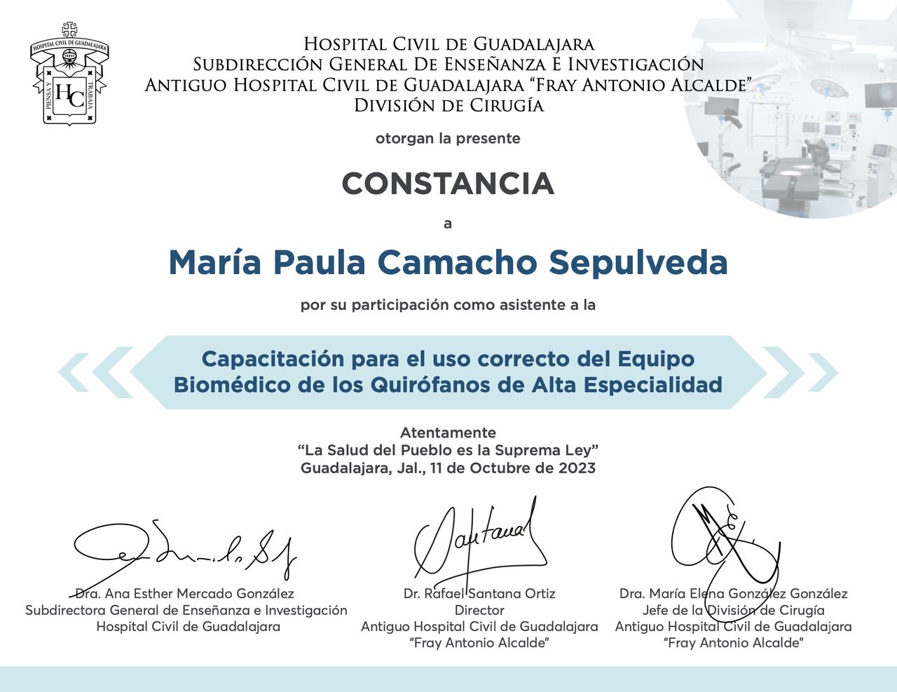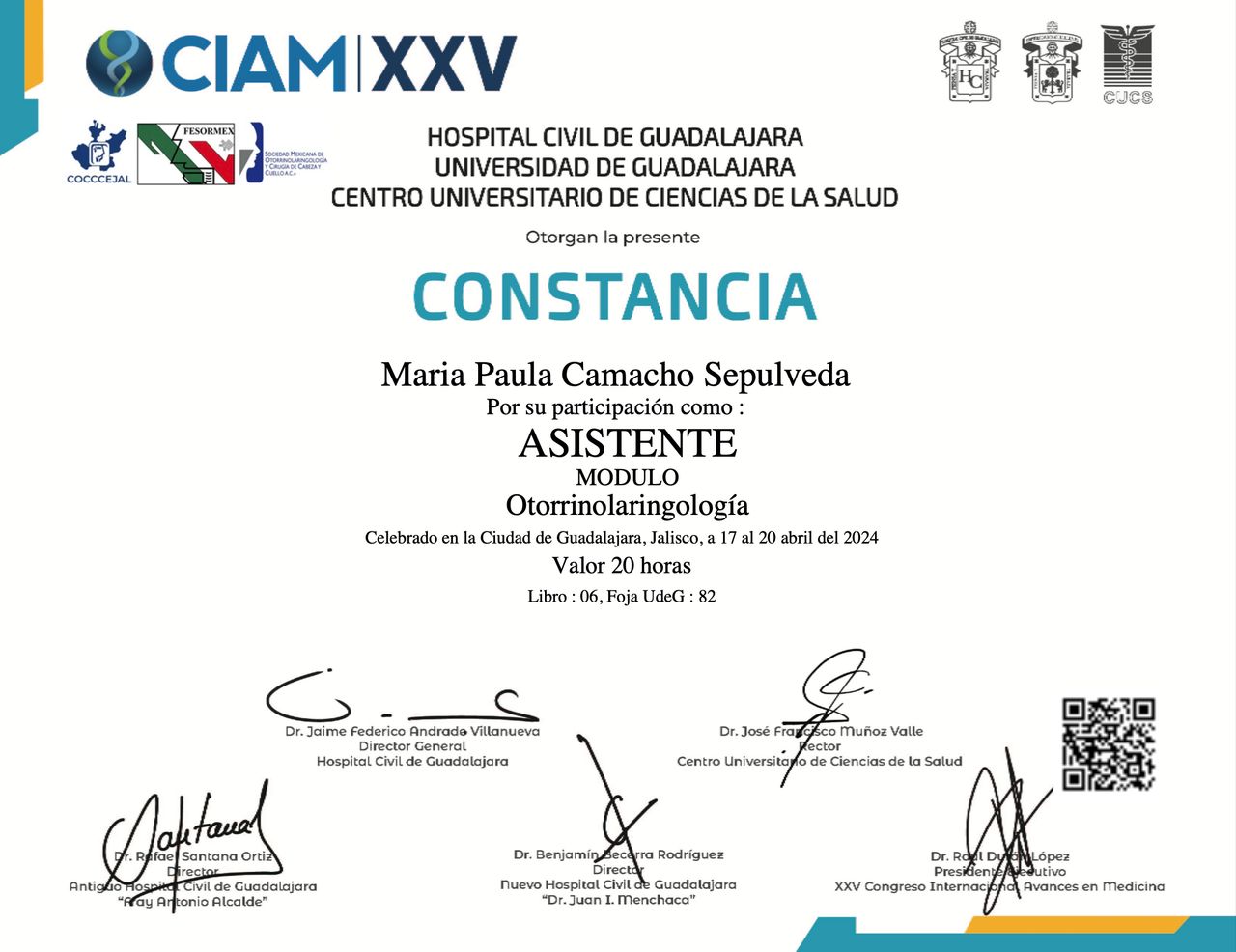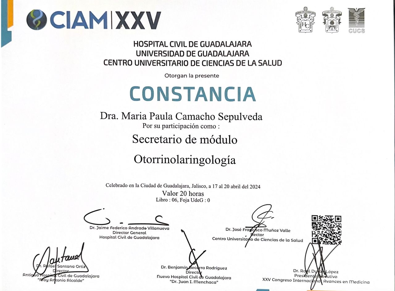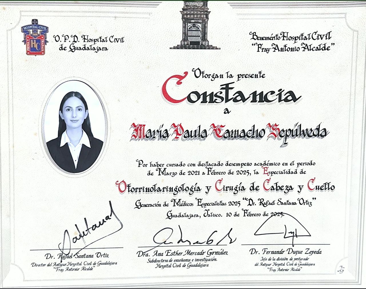 Realicé mi formación especialista en Otorrinolaringología y Cirugía de Cabeza y Cuello en el Hospital Civil de Guadalajara "Fray Antonio Alcalde"