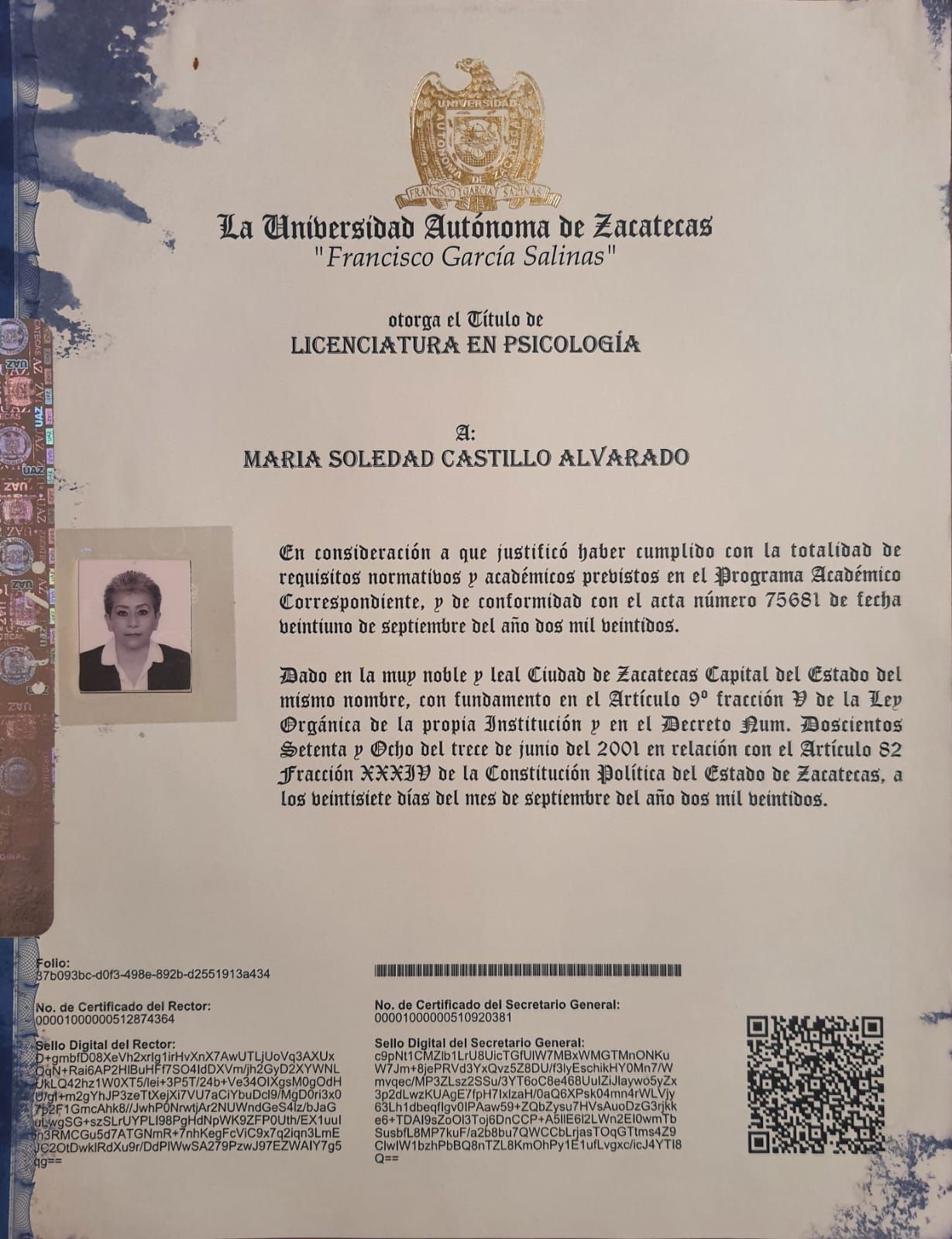 Psicóloga General, egresada de la Universidad Autónoma del Estado de Zacatecas, cuento con amplia experiencia en Atención a Víctimas y manejo de conflictos, avalada por diversos cursos y talleres a lo largo de mi trayectoria laboral.