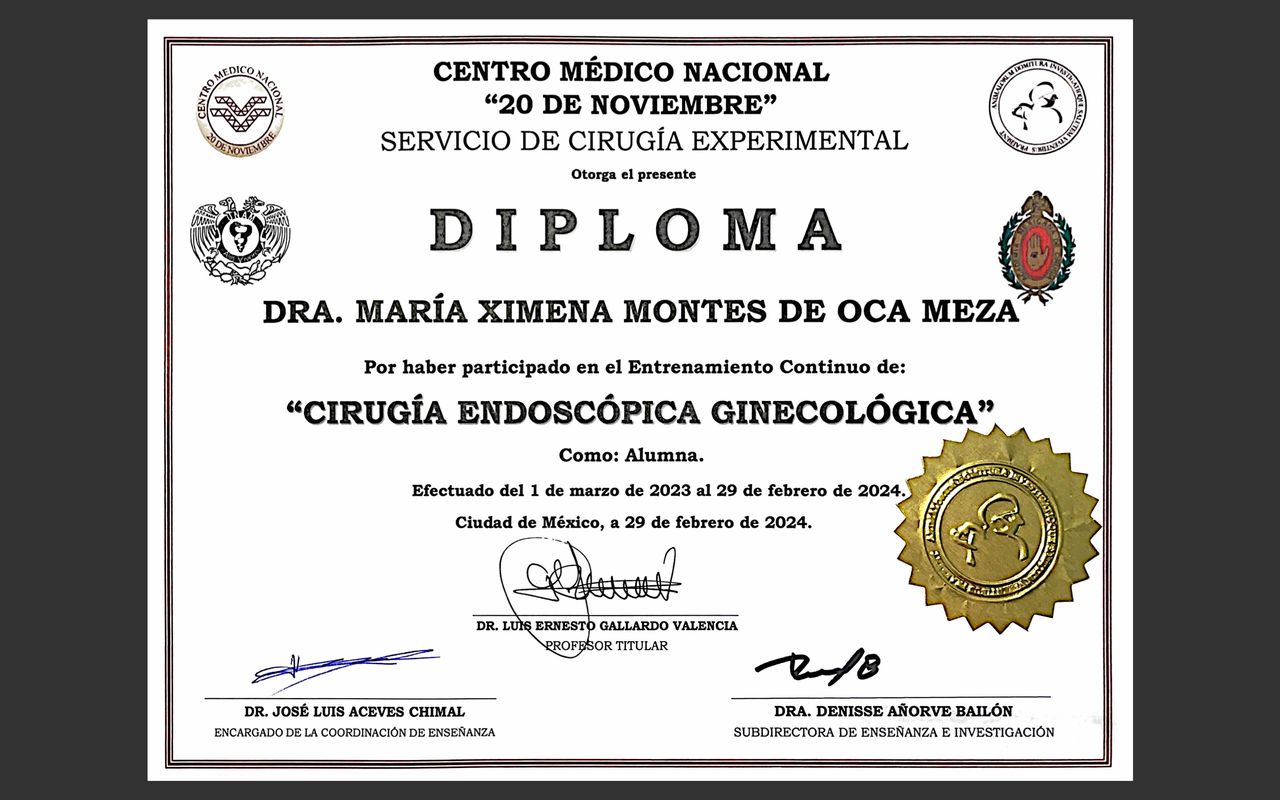 Mi pasión por la cirugía de mínima invasión me llevó a cursar una alta especialidad en Cirugía Endoscópica Ginecológica en el mismo hospital.
