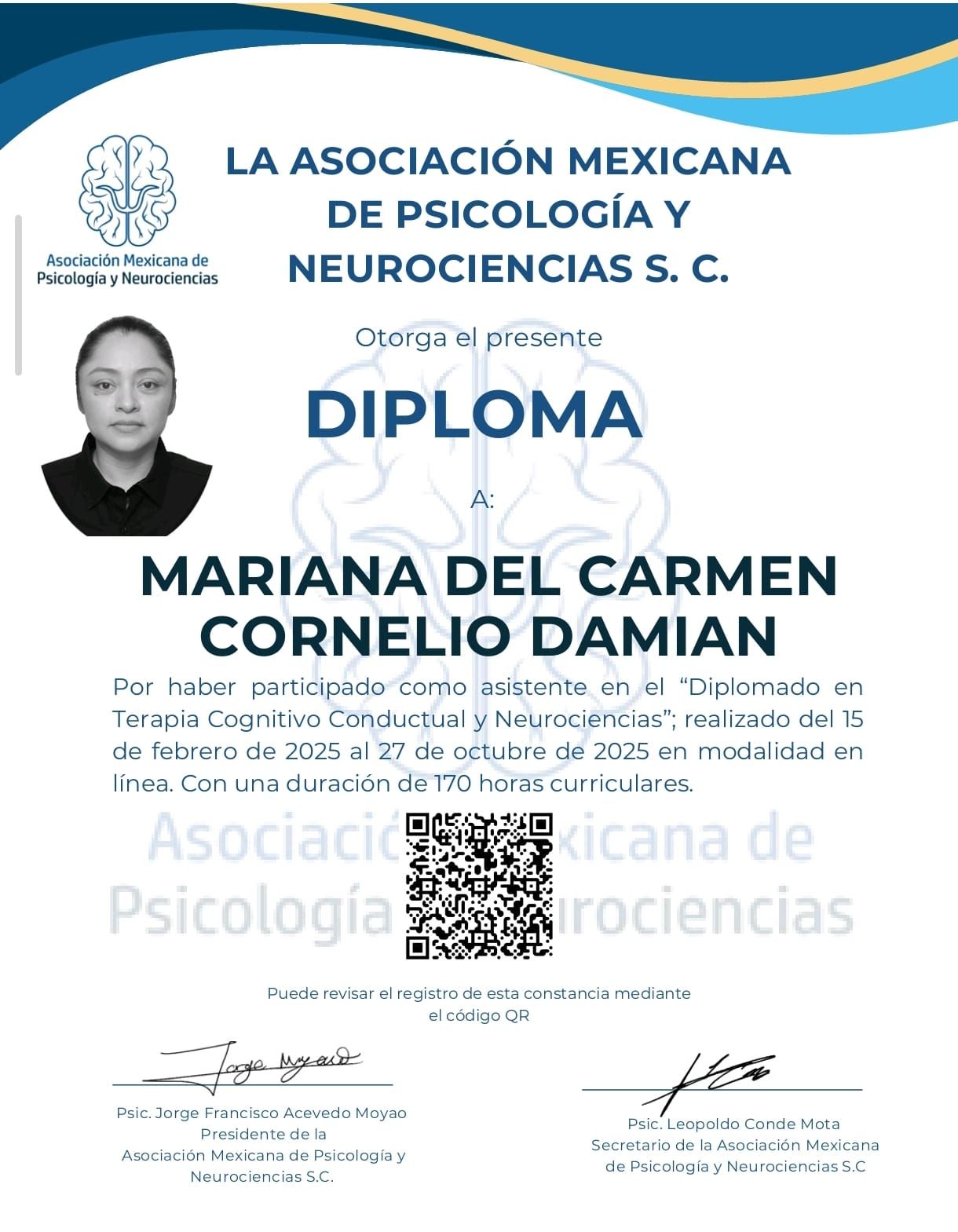 Me alegro de haber llegado a consulta con Mariana, al inicio tenía miedo de buscar ayuda, pero con la paciencia y empatía de la psicóloga he podido descubrir que estaré acompañado en este proceso y que no debo hacerlo solo, un paso a la vez pero haciendo que sean pasos firmes