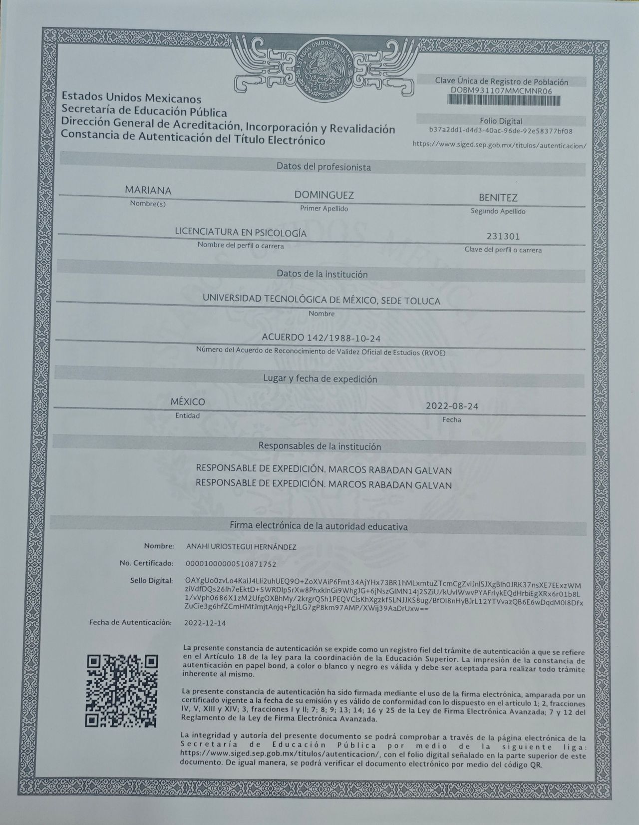 Lic. Mariana Domínguez Benítez