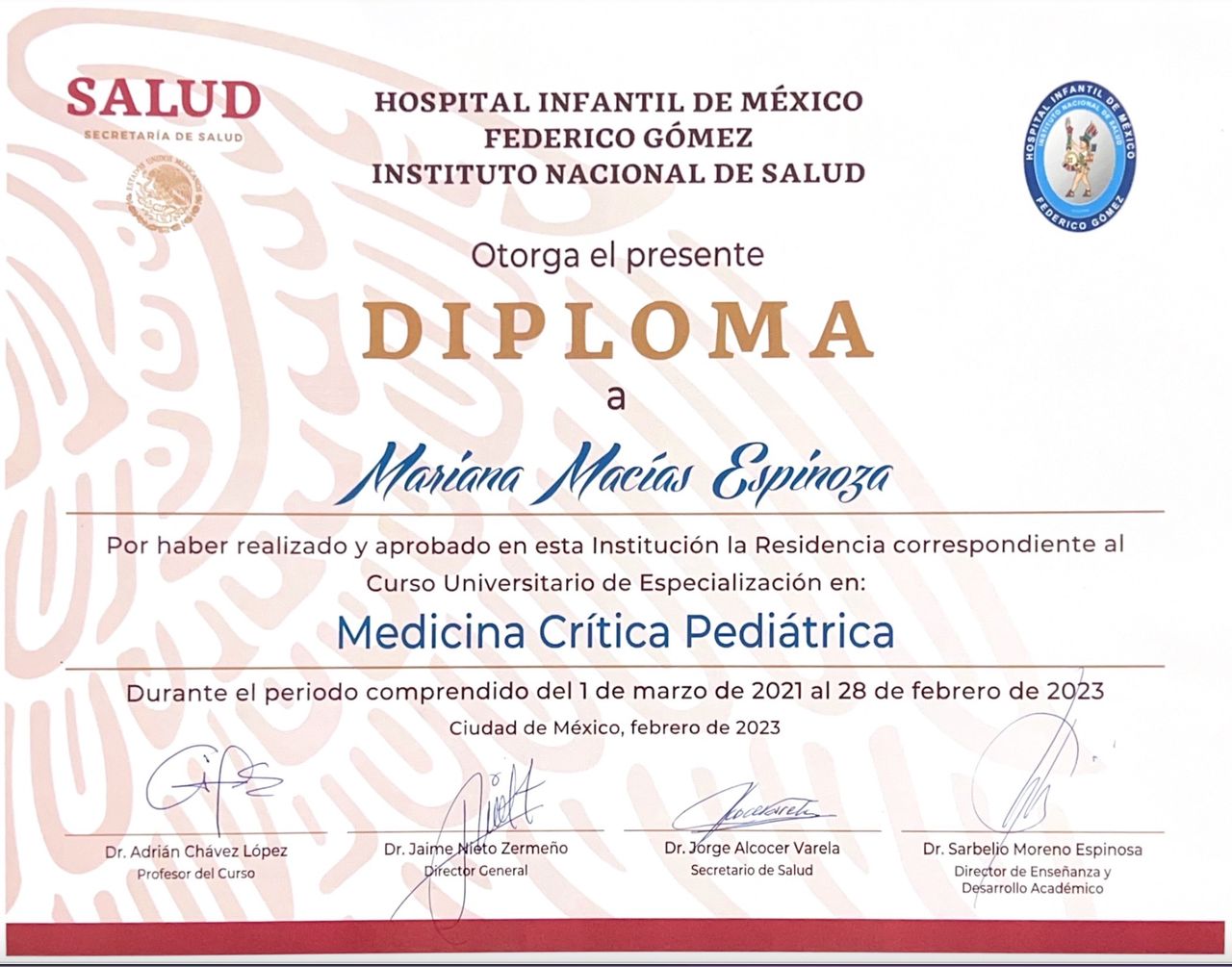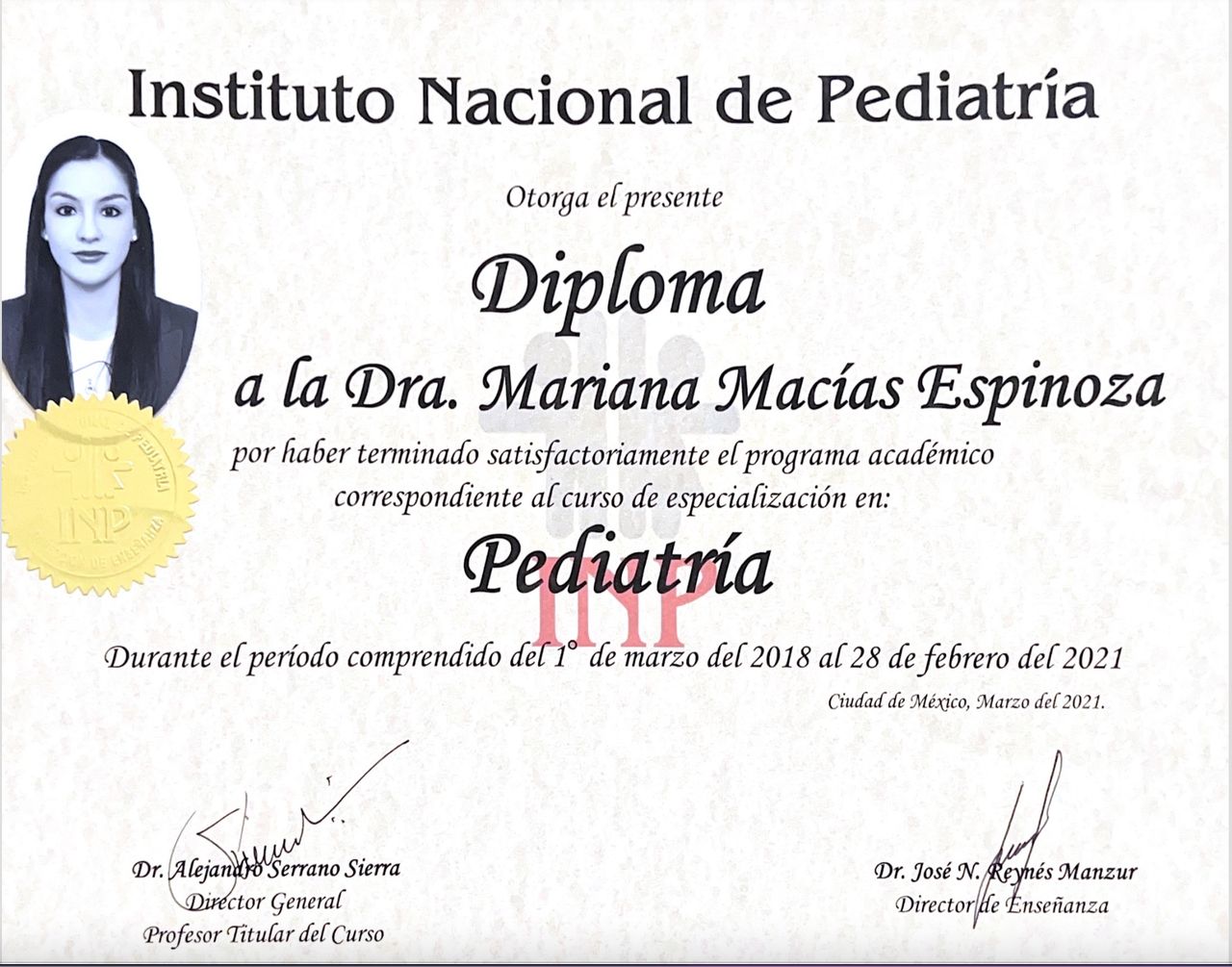 Soy la Dra. Mariana Macías Espinoza, pediatra y especialista en Medicina Crítica Pediátrica.