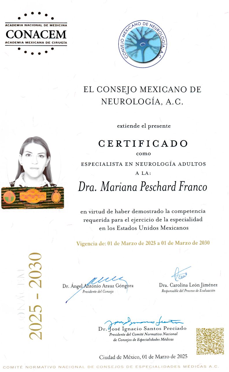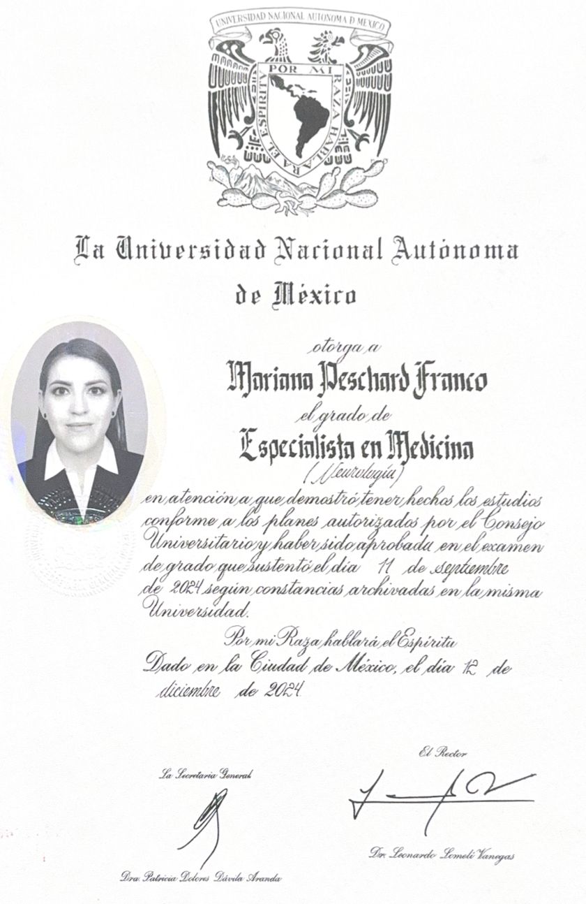 Neurología-EpileptologíaGraduada INNN / UNAM / ITESMEmpatía y puntualidad