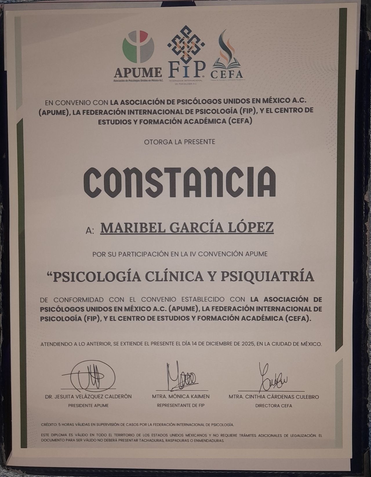 LIC. Psicología con maestría en Psicoterapia Psicoanalítica con niños, Púberes y adolescentes. Psicoterapia Psicoanalítica en Adultos. Diplomado en Terapia de duelo. entre otros.
