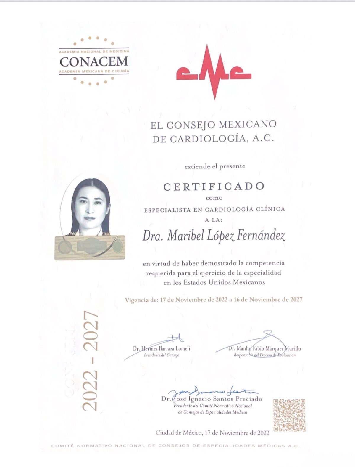 Soy cardióloga certificada por el Consejo Mexicano de Cardiología, egresada del Hospital General de México “Dr. Eduardo Liceaga”, avalado por la UNAM.