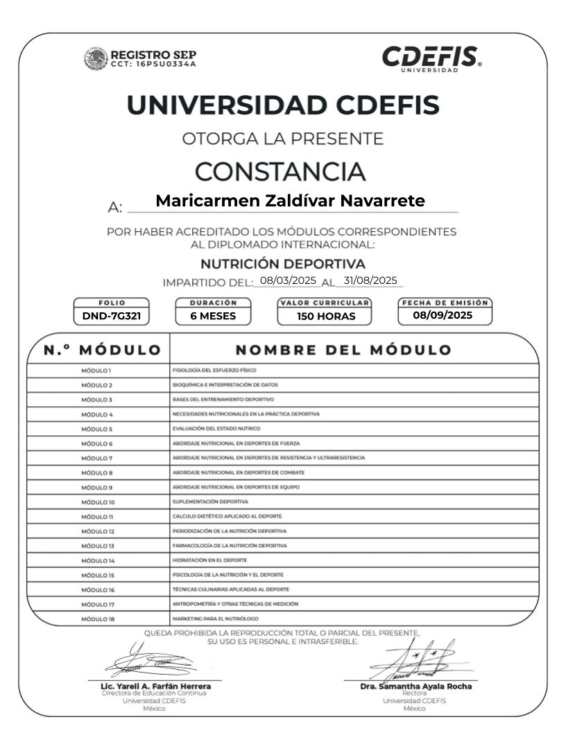 Soy nutrióloga y entrenadora, y me especializo en crear estrategias prácticas y sostenibles que puedas llevar a tu día a día sin restricciones innecesarias ni culpas. Mi enfoque combina nutrición, entrenamiento de fuerza y hábitos, siempre priorizando tu salud metabólica, tu energía y tu calidad de vida.