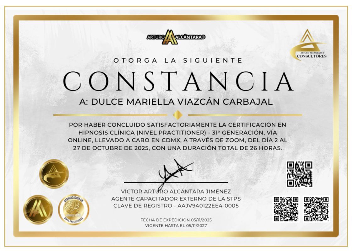 Agradezco la confianza que depositas en mi acompañamiento; para mí es un honor sostener un espacio seguro, claro y profesional donde puedas avanzar con certeza y calma.