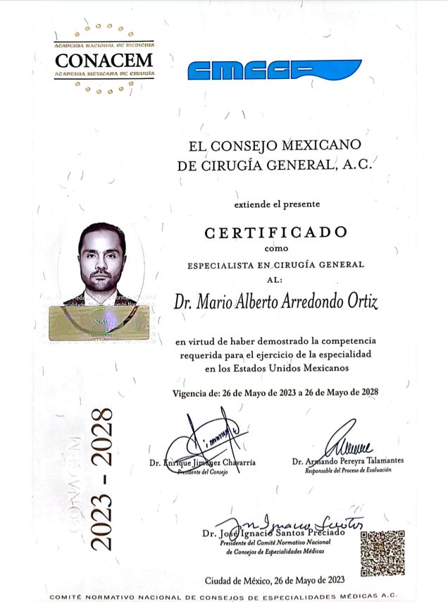 Cuento con doble certificación por parte del Colegio Mexicano de Cirugía General.