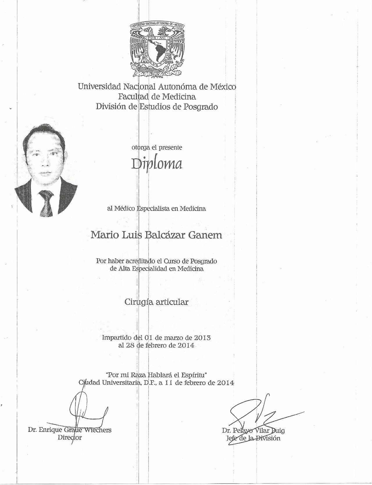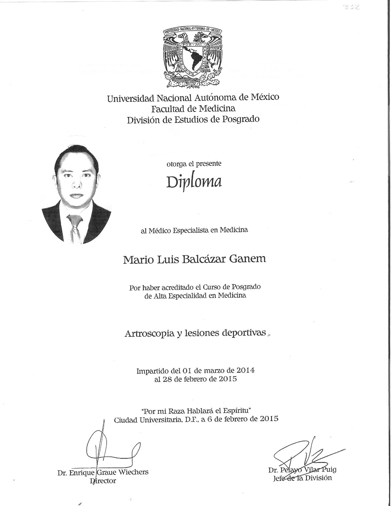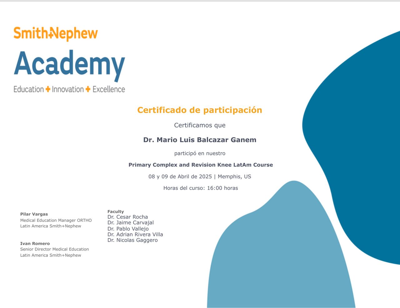 Soy el Dr. Mario Luis Balcázar Ganem, Ortopedista y Traumatólogo con subespecialidades en Cirugía Articular y Artroscopia–Lesiones Deportivas (UNAM / Instituto Nacional de Rehabilitación). Me enfoco principalmente en rodilla y hombro.