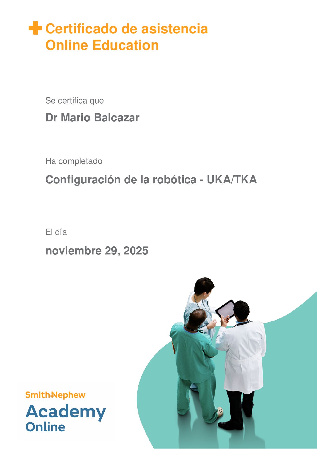 Alto volumen en prótesis de rodilla y Artroscopia.Experto en casos complejos de rodilla y hombro.Honestidad y Calidad Técnica y Humana